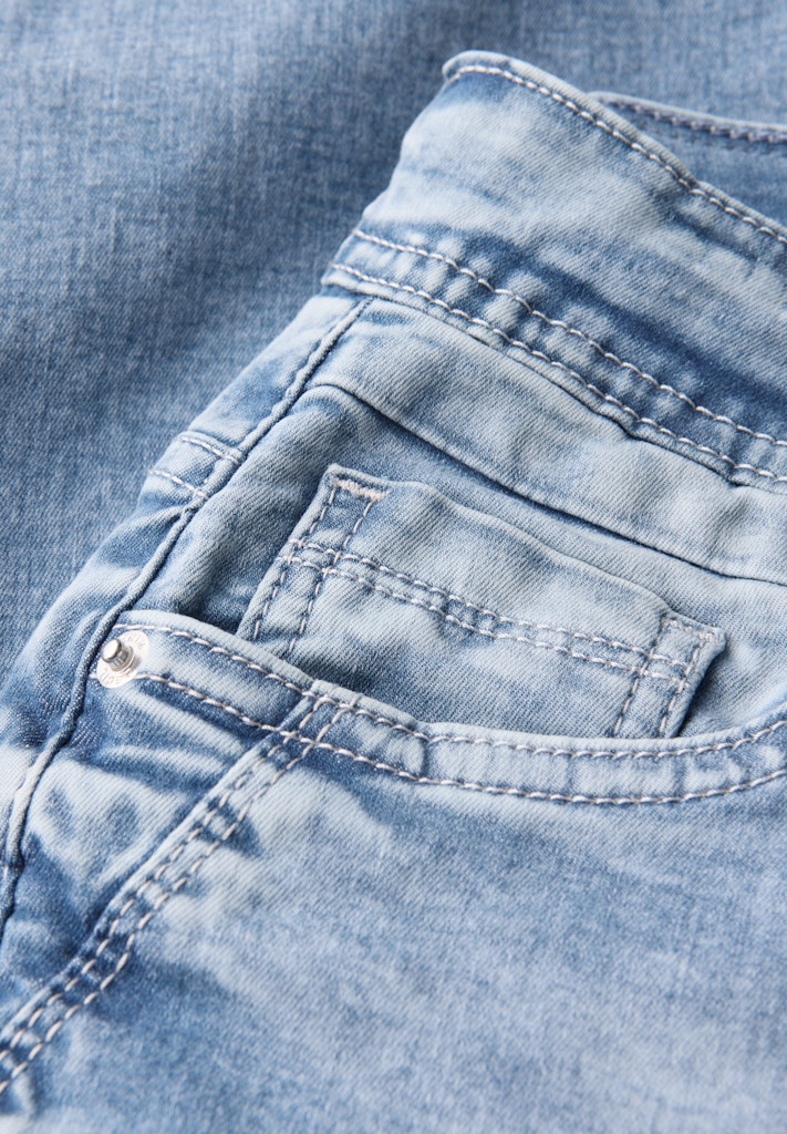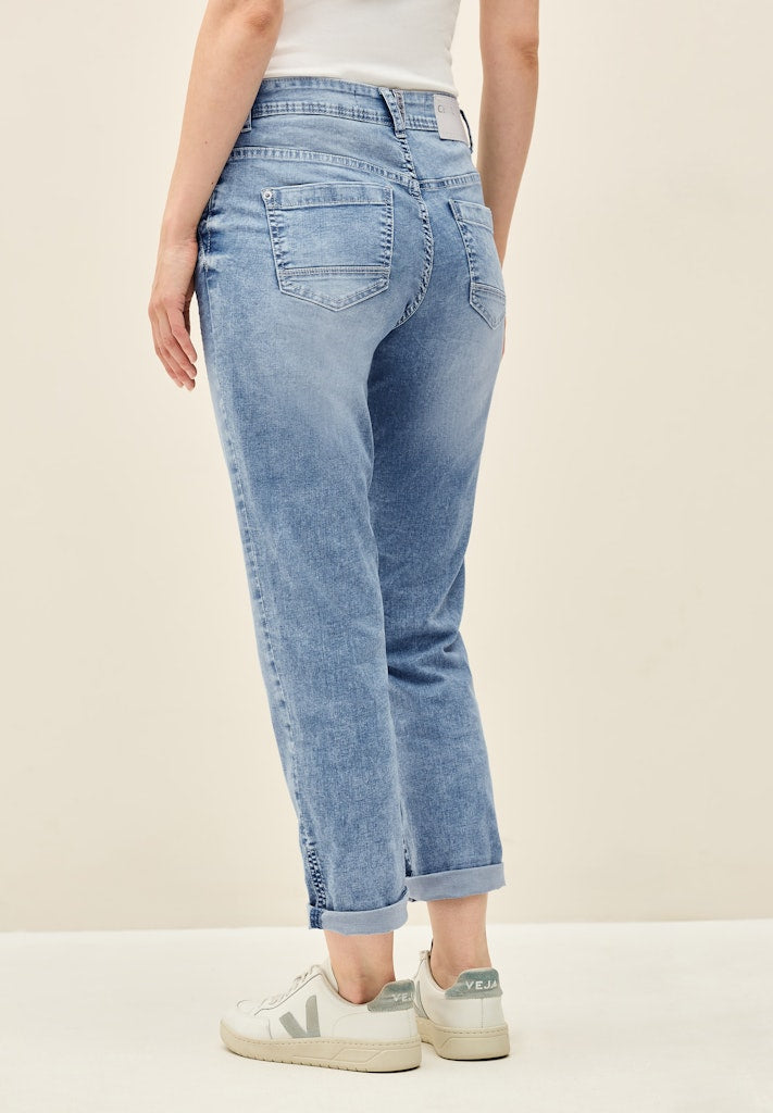 Im Casual Fit geschnitten, überzeugt diese Jeans von CECIL mit Straight Legs, hellblauer Waschung und Turn-Up Detail. Die 5-Pocket-Form bleibt ein Klassiker. Der Stretchanteil macht sie besonders bequem. Jeanshose im Causal Fit Mid Waist und Straight Legs 5-Pocket Hellblaue Waschung Baumwollmix mit Stretchanteil Material: 78% Baumwolle, 20% Polyester, 2% Elasthan