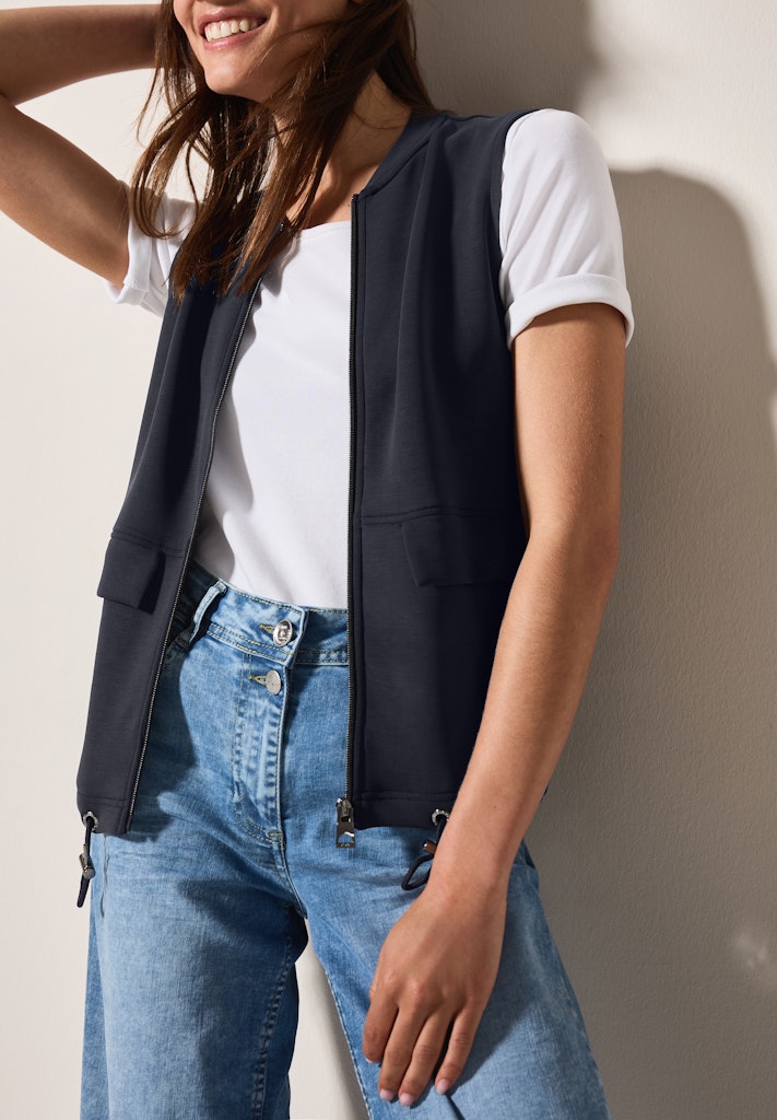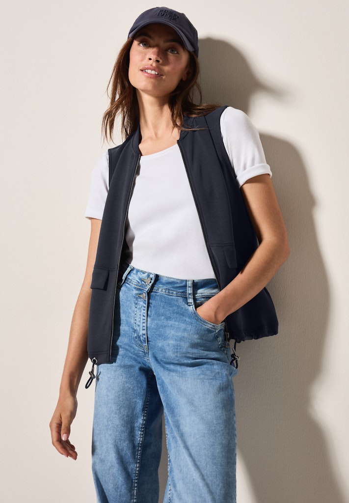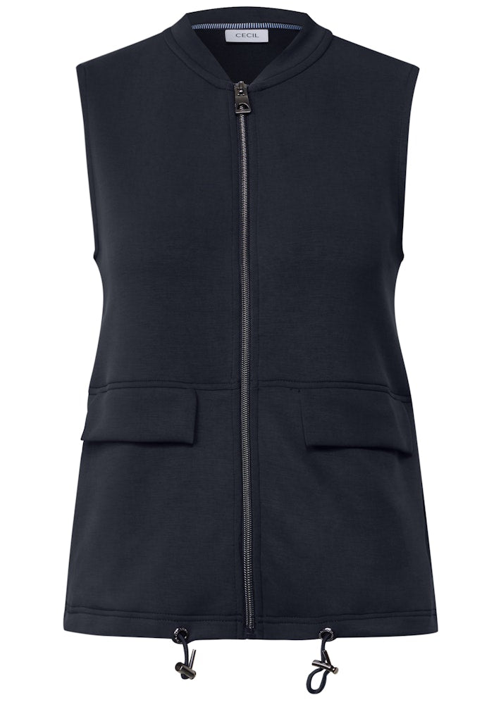 Diese Weste von CECIL für Damen punktet mit ihrem sportiven Design und angenehmem Tragekomfort. Der Stehkragen, der Reißverschluss und seitliche Taschen runden den Look ab. Ein Tunnelzug am Saum sorgt für eine individuelle Passform. Weste mit Reißverschluss Stehkragen Taschen Tunnelzug am Saum Materialmix mit Stretchanteil Material: 49% Polyester, 44% Modal, 7% Elasthan