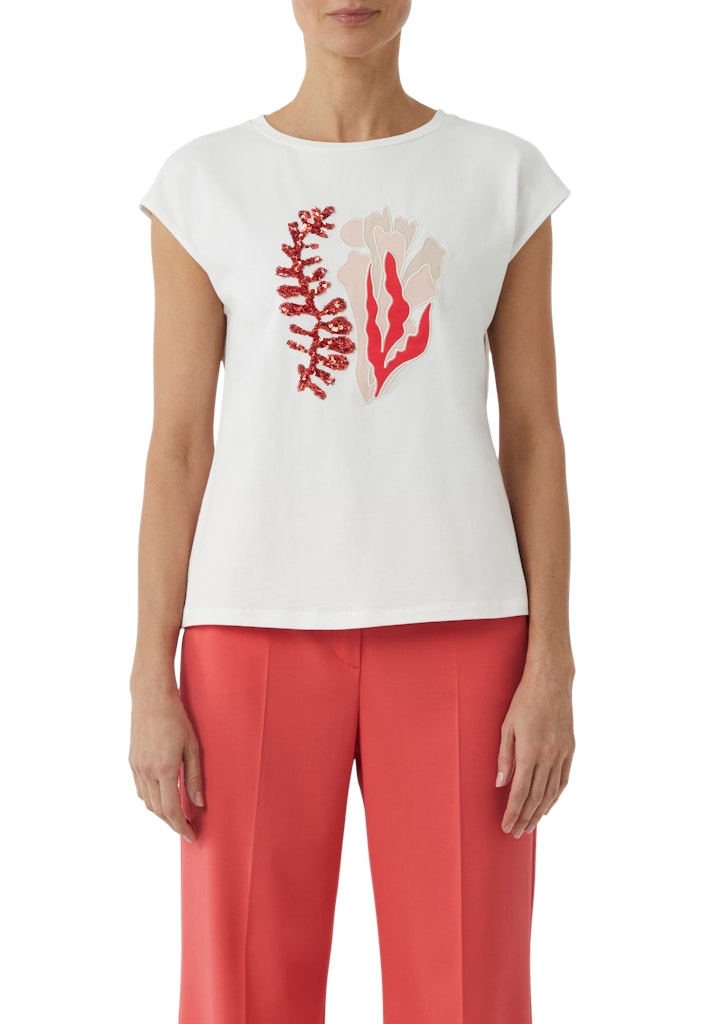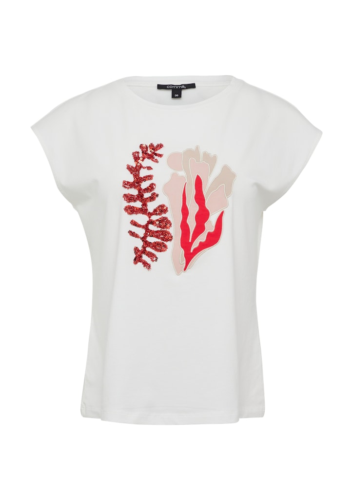 Entdecken Sie unser vielseitiges Jersey-T-Shirt mit Pailletten und Artwork! Der Regular Fit und überschnittene Schultern sorgen für einen lässigen Look, während der Rundhalsausschnitt klassische Eleganz verleiht. Der hochwertige Baumwollmix garantiert angenehmen Tragekomfort. Perfekt für Casual-Anlässe und Urlaubsoutfits - stylen Sie es mit Jeans für einen entspannten Alltags-Look oder mit einer Shorts für einen sommerlichen Vibe.