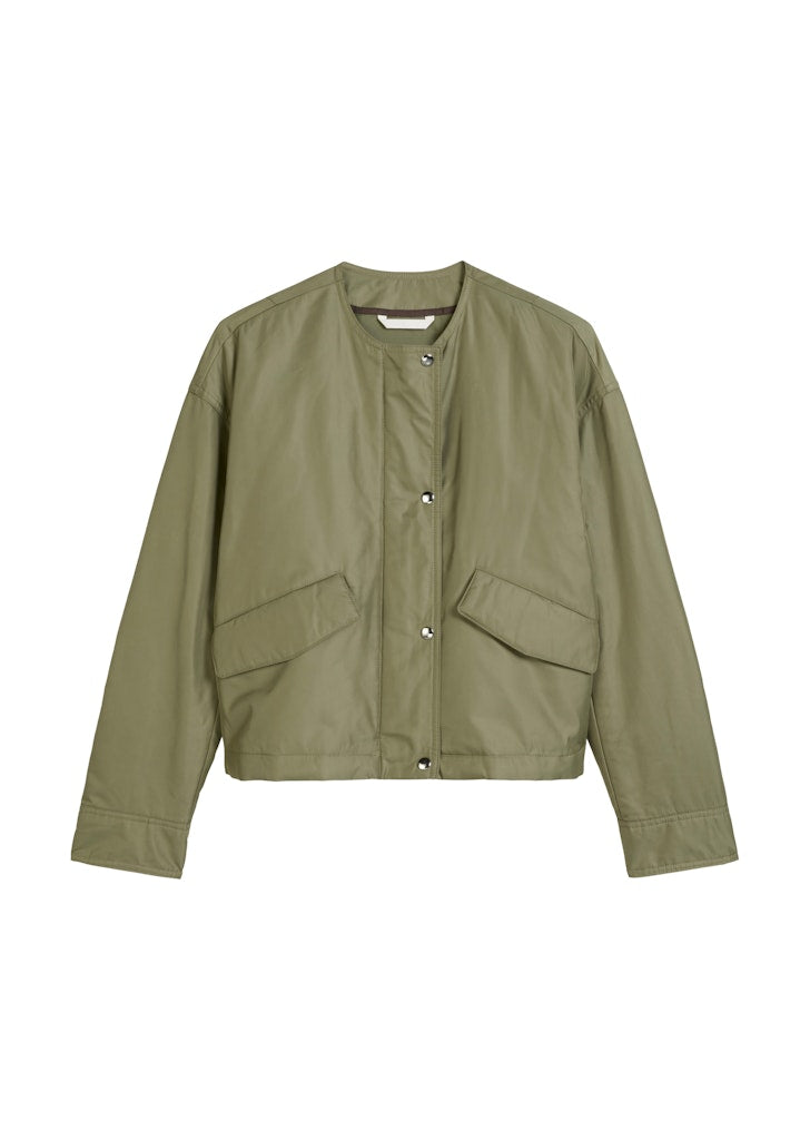 Inspiriert vom Fliegerblouson, aber mit klassischem Look and Feel: Die superleichte, kragenlose Jacke in bewährter, wasserabweisender Qualität mit weicher Wattierung - ultraleicht und trotzdem warm. Die Füllung Unifi REPREVE® ist unsere Alternative zur Daune - sie bietet ein hohes Wärmerückhaltevermögen, ist feuchtigkeitsabweisend und hat einen weichen, federnden Griff. Die Jacke ist klassisch geschnitten mit langen Ärmeln, leicht überschnittenen Schultern und praktischen Pattentaschen. Die Jacke wird mit einem Reißverschluss und einer darüber liegenden Druckknopfleiste geschlossen.