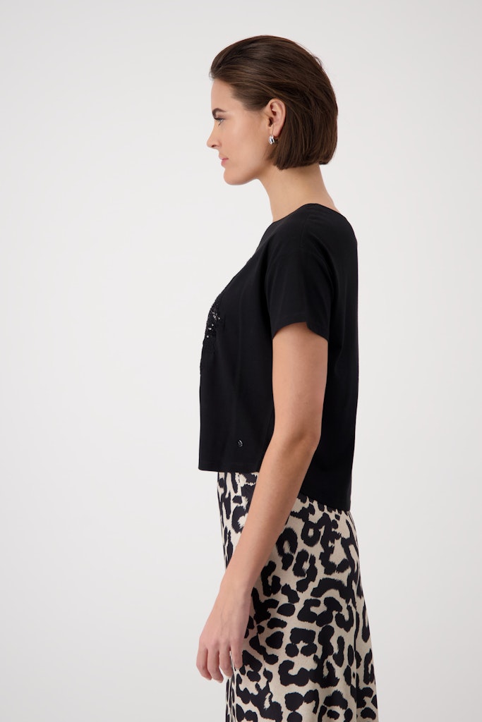 Dieses stylische T-Shirt mit tonigen Pailletten sorgt für einen funkelnden Auftritt.