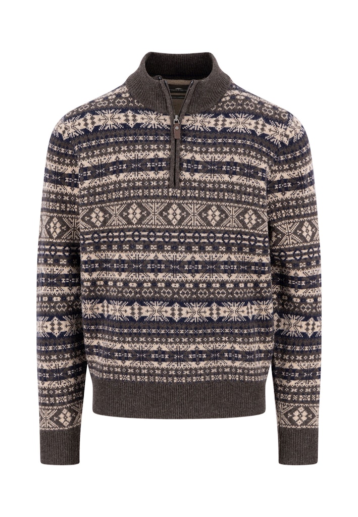 Fynch-Hatton / He.Pullover / Zip Troyer, Jacquard, Lambswool*RWS / 861 dark chocolate / XL