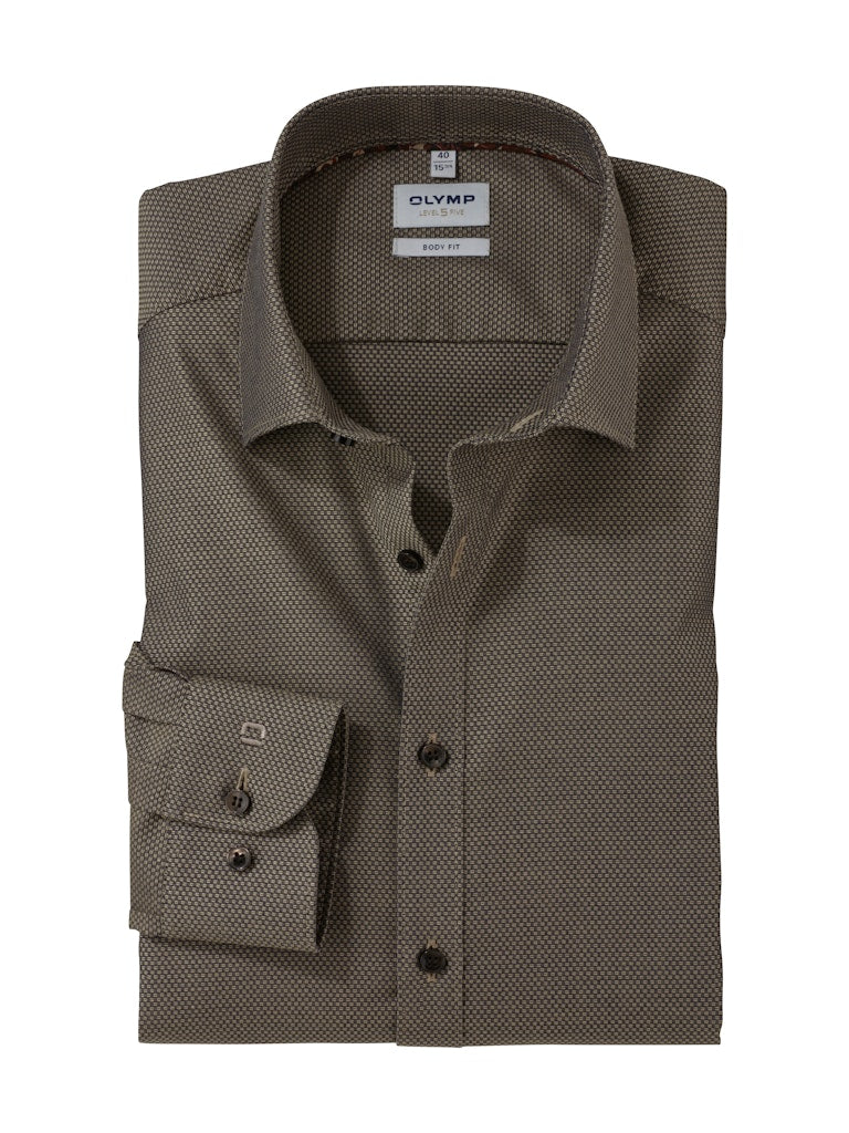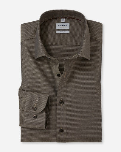 Das elegante OLYMP Level Five Businesshemd im Faux-Uni-Design überzeugt mit fein strukturiertem Micro-Webmuster und intensiver Farbwirkung. Das körperbetont taillierte Hemd ist mit dem innovativen New York Kent ausgestattet. Die bewährte OLYMP Comfort-Stretch-Qualität ist bügelleicht, hautsympathisch, dehnbar und formbeständig.
