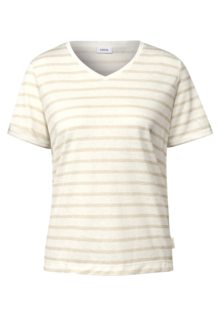 Dieses T-Shirt von CECIL für Damen bringt mit Streifen und Strick-Optik eine modische Note in deinen Look. Der V-Ausschnitt sorgt für einen femininen Look, während die angenehme Jersey-Qualität ideal für den Alltag ist. T-Shirt V-Ausschnitt Kurzarm Strick-Optik Angenehme Jersey-Qualität Material: 55% Polyester, 45% Viskose