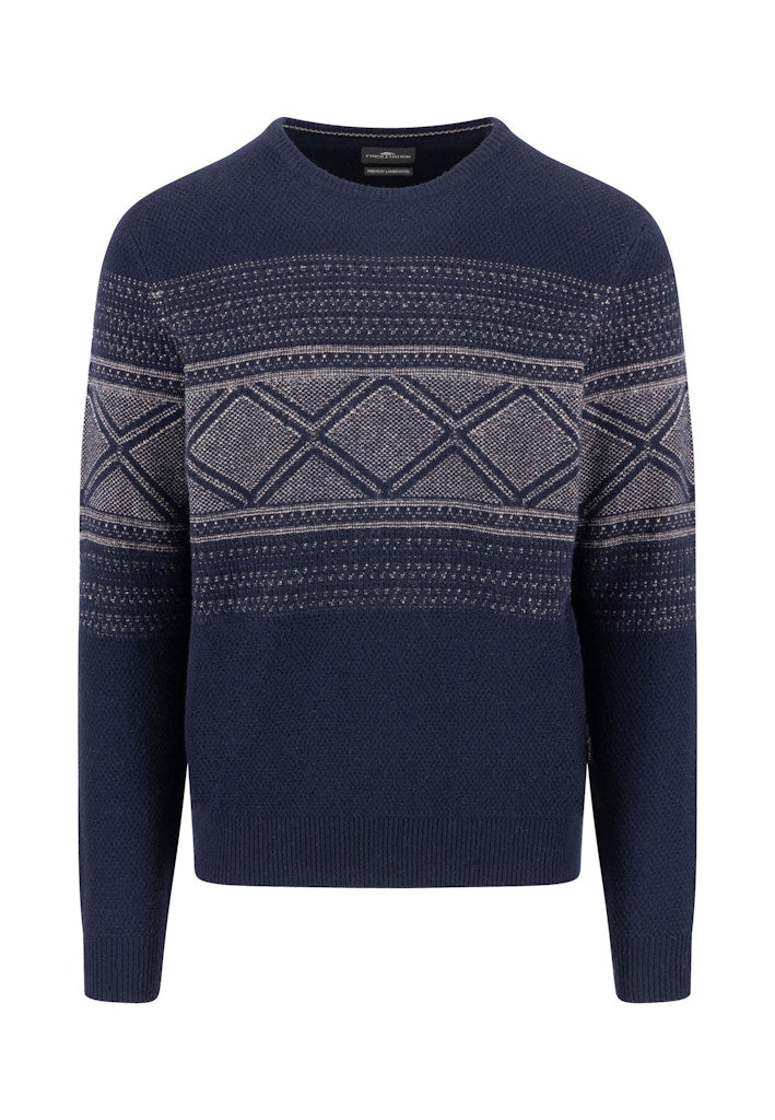 Fynch-Hatton / He.Pullover / O-Neck, contrast, Lambswool*RWS / 690 navy / XL