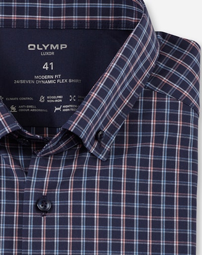 Harmonisches Karo und Button-down unterstreichen die sportive Linie dieses OLYMP Luxor Businesshemds. Die innovativen Climate Control Hightech-Garne sorgen für das hautsympathische Tragegefühl. Sie punkten pflegeleicht, atmungsaktiv, dehnbar, schnelltrocknend sowie temperatur- und feuchtigkeitsregulierend. Bügel- und knitterfrei.
