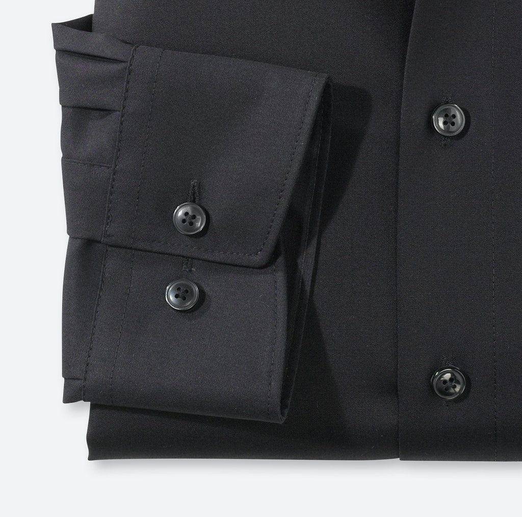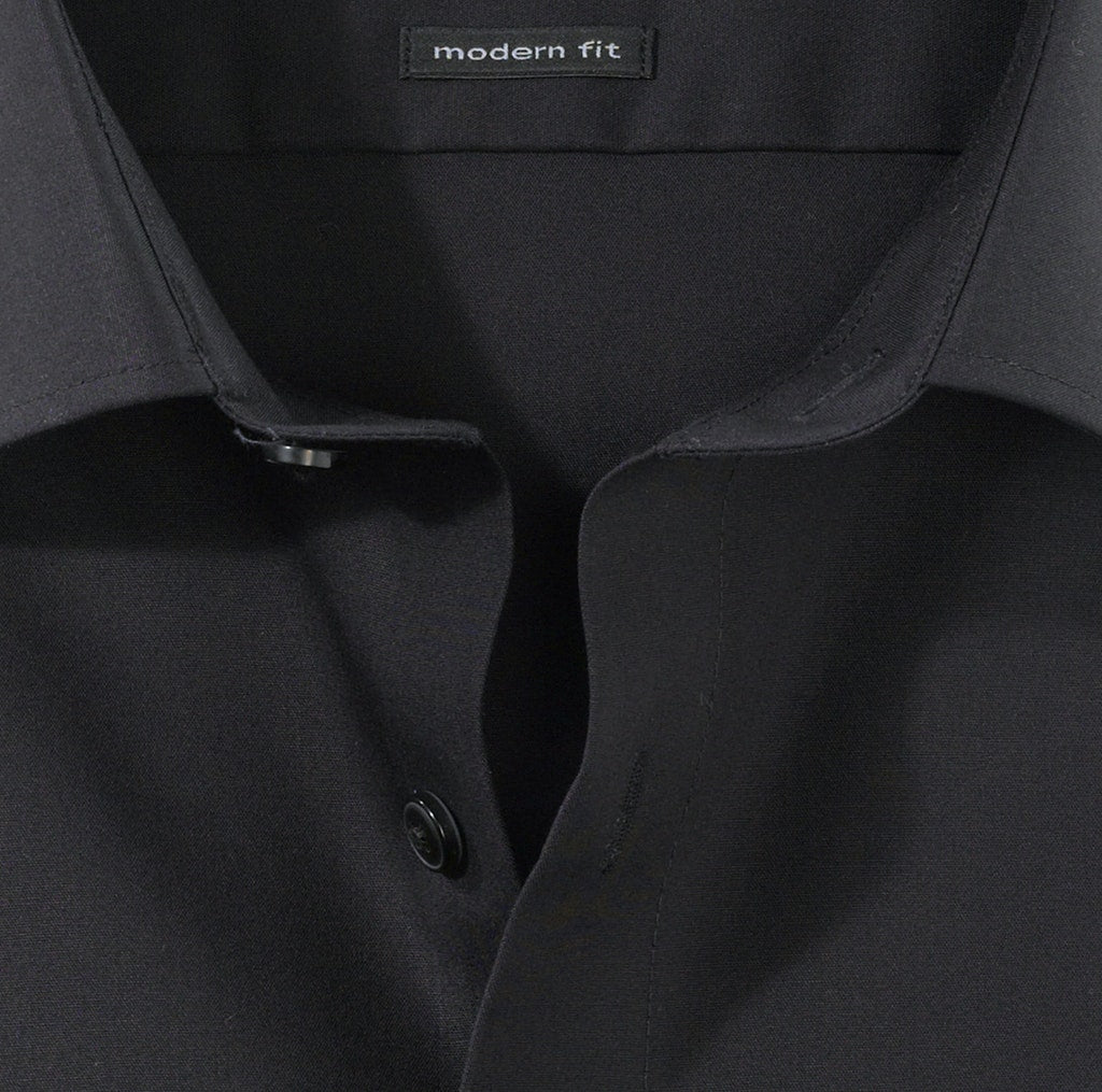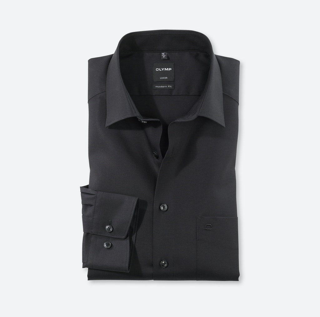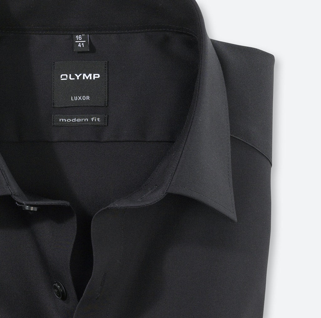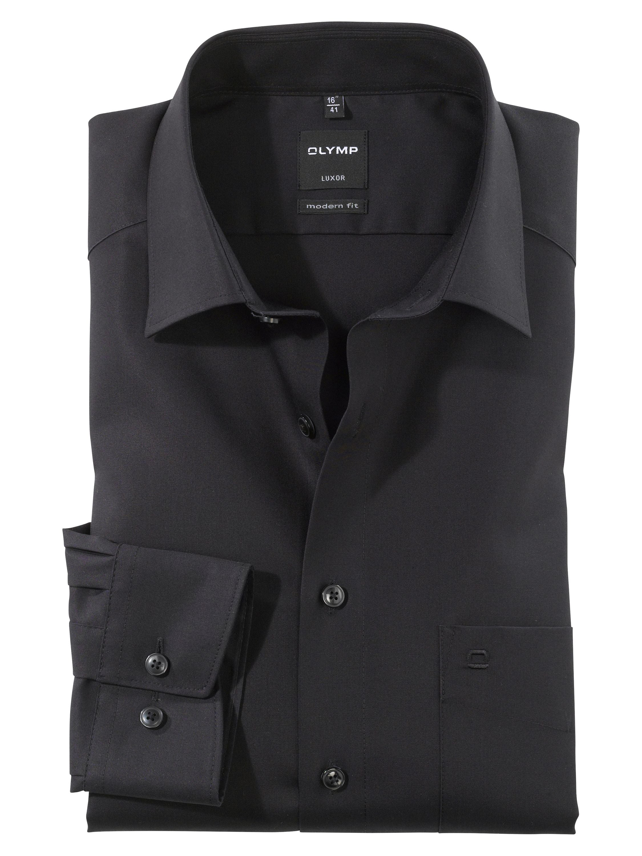 Unverzichtbar im modernen Business-Outfit: Das OLYMP Luxor modern fit Hemd mit extra langem Arm überzeugt nicht nur durch seine Produktvorteile, sondern auch mit angesagtem Design und dezent inszenierten Details. Ein eleganter New-Kent-Kragen sowie verstellbare Kombimanschetten verleihen diesem unifarbenen schwarzen Hemd einen Hauch von Extravaganz. Die bügelfreie Ausstattung schützt nicht nur wirksam vor exzessiver Faltenbildung, sondern sorgt gleichzeitig für einen positiven Gesamteindruck des Trägers. Männer im OLYMP.