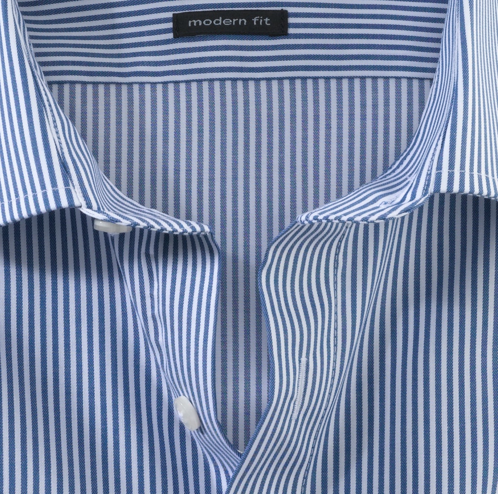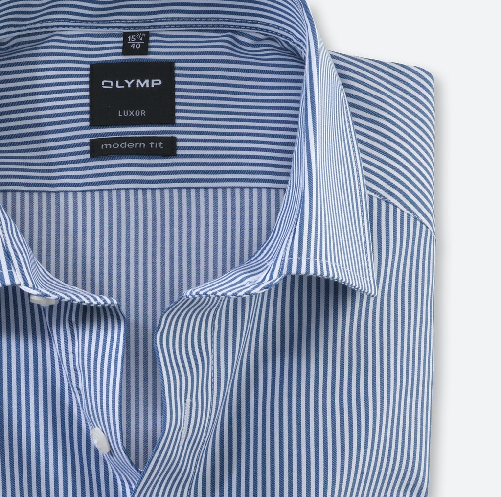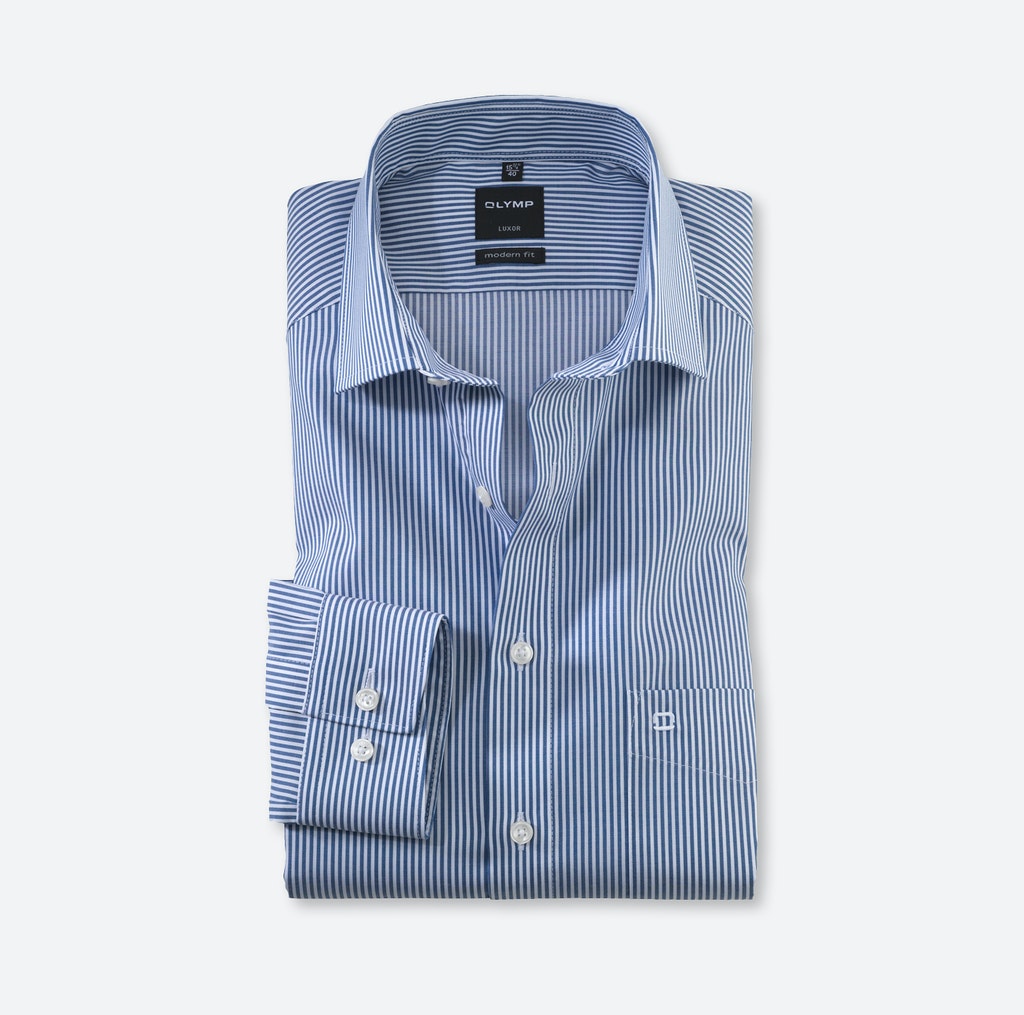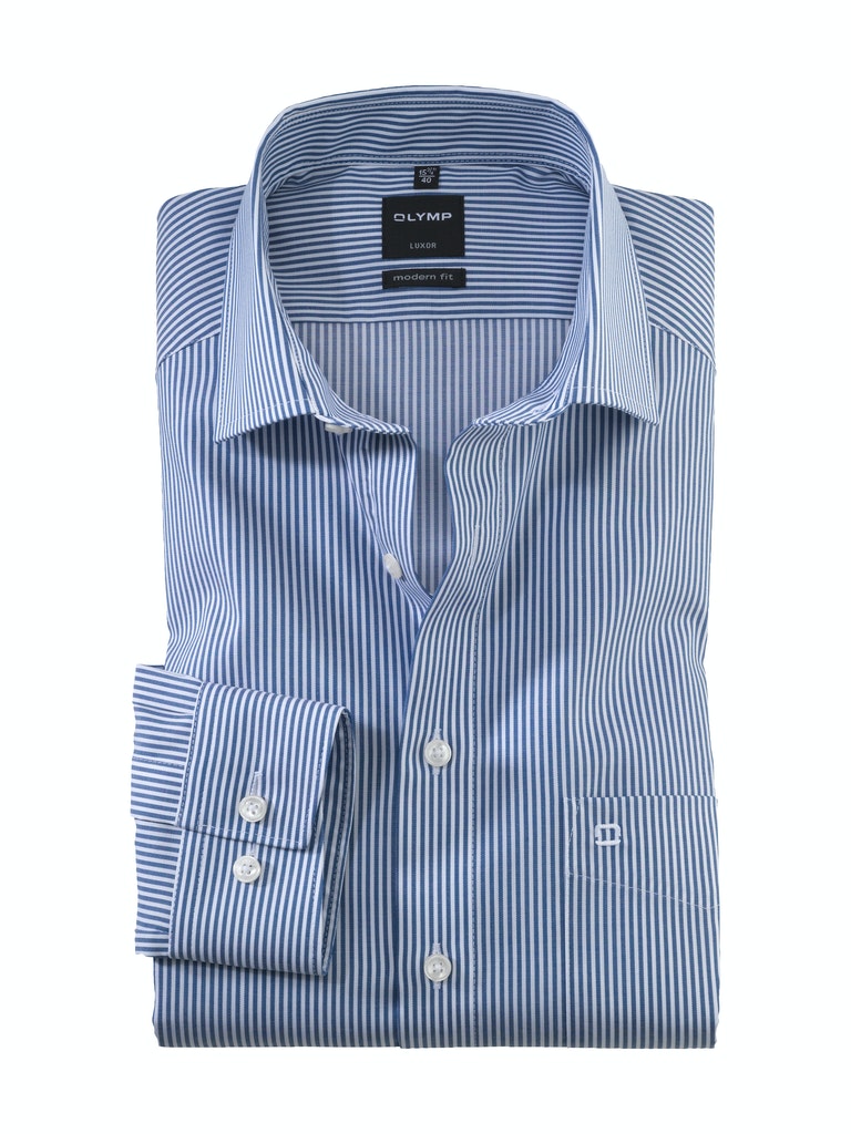 Dank modischer Designs und ästhetisch herausgearbeiteter Detaillösungen ist dieses Businesshemd ein gern gesehener Geschäftspartner. Erstklassige Rohstoffe, Streifen Design in marine und eine langjährige Verarbeitungsexpertise machen das OLYMP Luxor modern fit Hemd zu einem wahren Leistungsträger. Der Global-Kent-Kragen und weitenverstellbare Kombimanschetten runden das Gesamtbild ab. Ganz besonders mit den bügel- und knitterfreien sowie atmungsaktiven und hautsympathischen Hemdenstoffen.