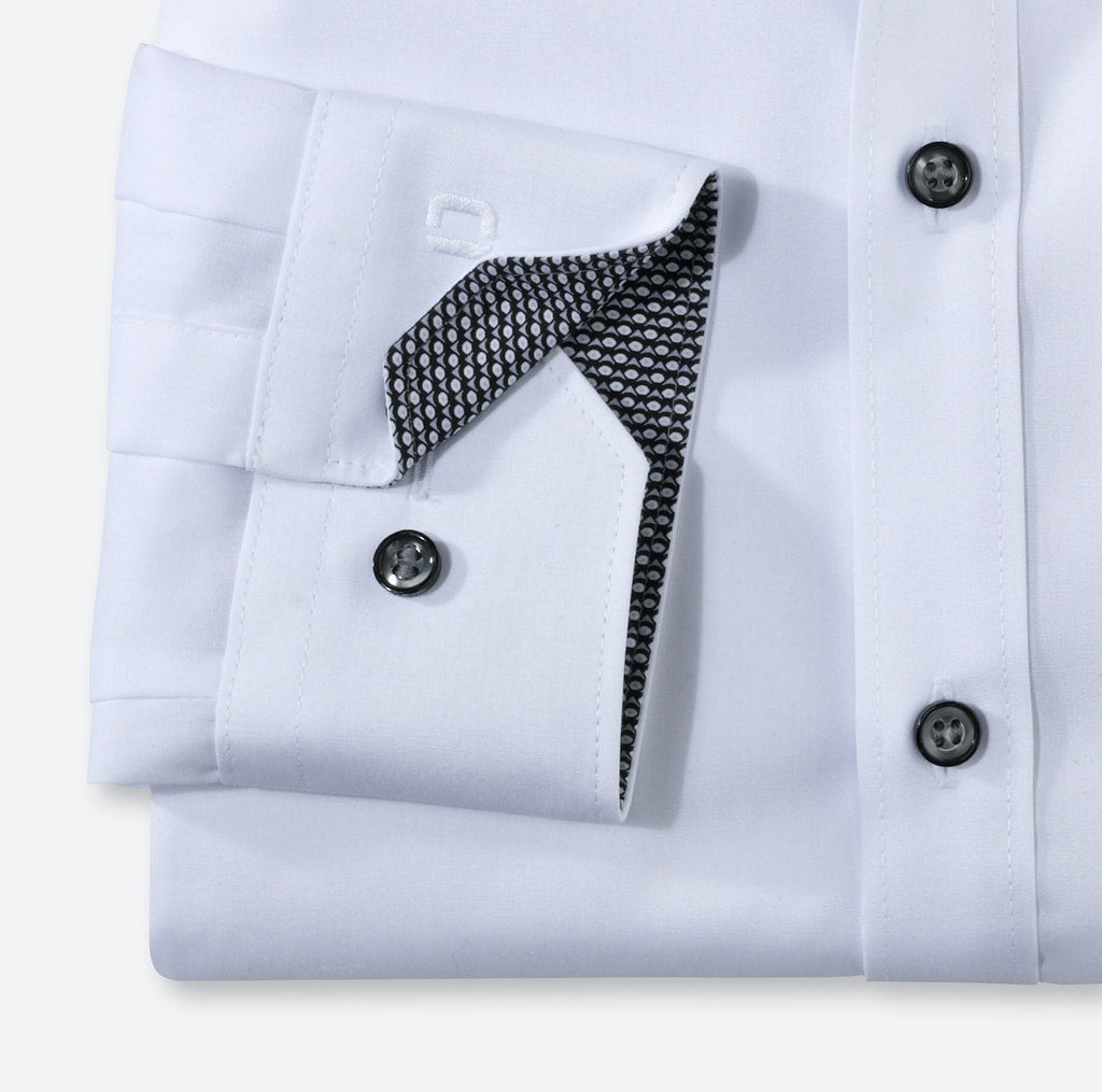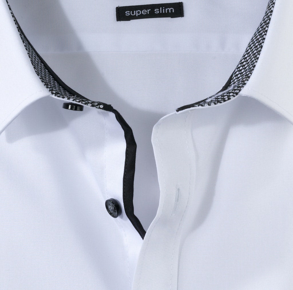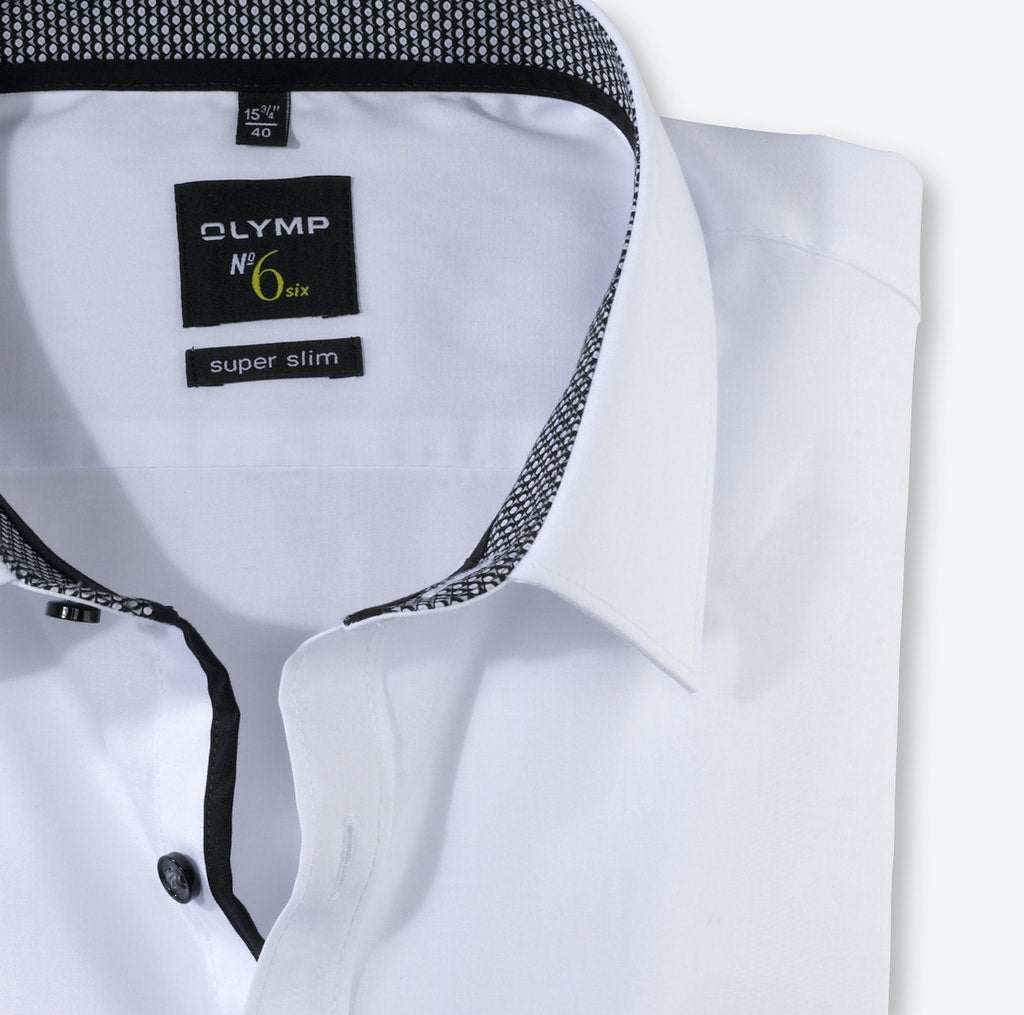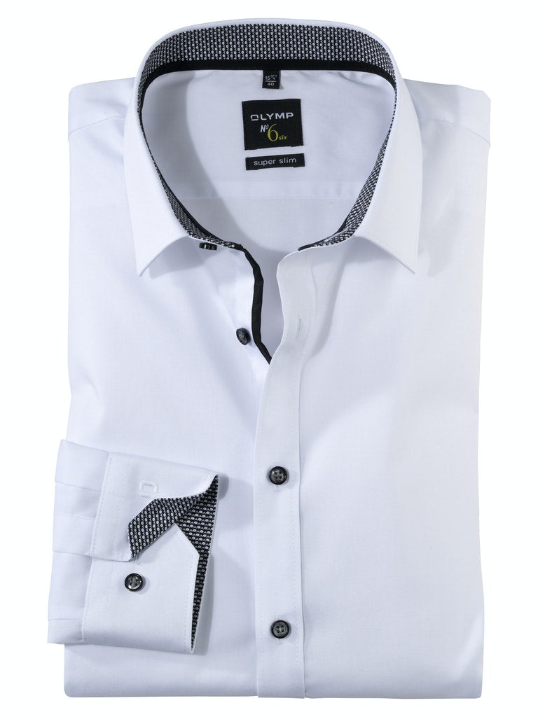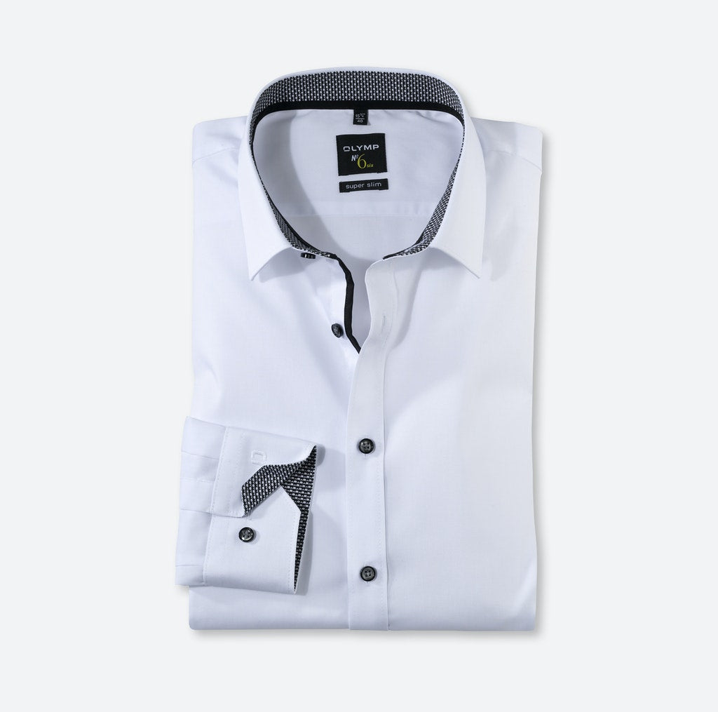 Das innovative Businesshemd OLYMP No. Six super slim mit dem Oberstoff in Weiß mit neuen Proportionen bringt den hart antrainierten Sixpack optimal zur Geltung. Das stark taillierte Hemd überzeugt durch seine körperbetonende Schnittführung und bildet damit die perfekte Basis für die Garderobe sportlicher Männer. Ein eleganter Urban-Kent-Kragen und die schmale Knopfleiste unterstreichen das schlanke Profil. Der Besatz in Uni am Krageninnensteg und den Innenmanschetten rundet das Gesamtbild ab. Die paspelierte Knopfleiste zeugt zudem von der Modekompetenz des Trägers.