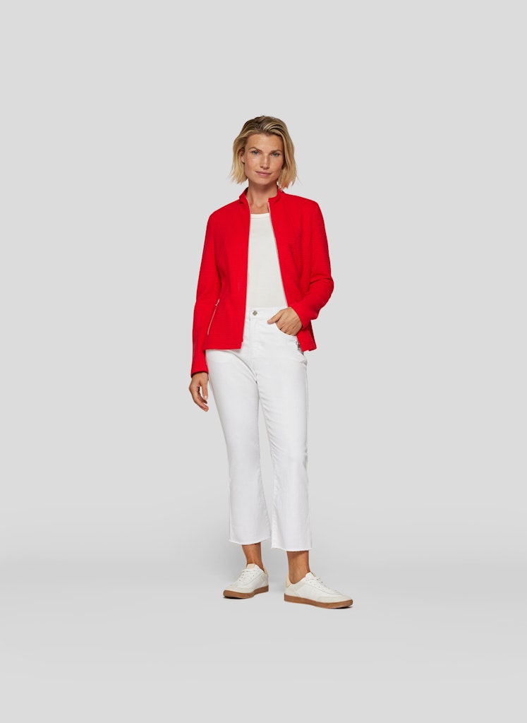 Der strukturierte Stoff sorgt für eine moderne Optik, während die figurbetonte Passform die Silhouette elegant unterstreicht. Der praktische Reißverschluss sowie zwei Zipper-Taschen runden das sportive Design funktional ab. Ein idealer Begleiter für stilbewusste Auftritte im Alltag oder im Büro.Strukturierter Stoff mit stilvoller Oberfläche.Stehkragen für einen sportlich-eleganten Look.Zwei Reißverschlusstaschen als praktische Details.Elastisches, trageangenehmes Material für besten Komfort.