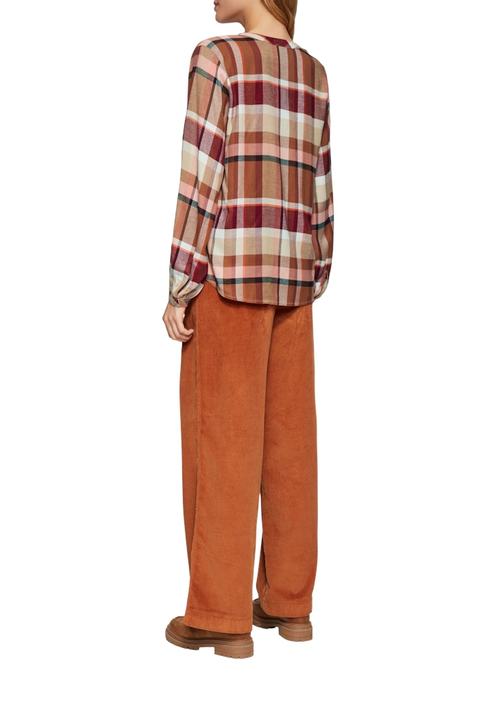 Karierte Eleganz trifft auf Komfort! Diese fließende Langarm-Bluse aus Viskosemix ist dein vielseitiger Begleiter für jede Jahreszeit. Mit Raffung und verlängertem Rückensaum zaubert sie eine tolle Silhouette. Perfekt fürs Büro oder einen Stadtbummel - wie stylst du sie? Tipp: Kombiniere sie mit einer schmalen Jeans für einen lässig-schicken Look!
