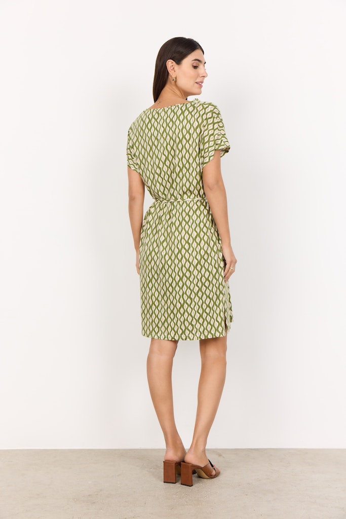 SC-FELICITY AOP 508 ist ein bequemes Kleid aus 50% Bio-Baumwolle und 50% Viskose. Das Kleid hat einen geometrischen Aufdruck, kurze Ärmel, eine verstellbare Taille und einen Rundhalsausschnitt. Das Kleid kann zu verschiedenen Anlässen getragen werden und lässt sich gut mit verschiedenen Accessoires und Schuhen kombinieren.