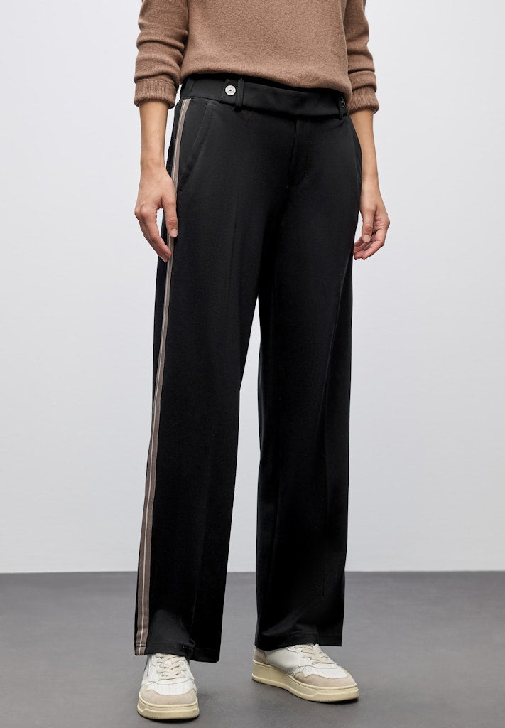 Diese Straight Leg Hose von Street One für Damen vereint moderne Eleganz mit bequemem Casual Fit. Der hohe Bund mit dekorativem Gürteldetail und Knöpfen setzt einen stilvollen Akzent, während die gerade Form und seitlichen Taschen für Alltagstauglichkeit sorgen. Perfekt für gepflegte Looks mit Komfortanspruch. Damenhose im Causal Fit High Waist und Straight Legs Gürteldetail mit Knöpfen Seitliche Taschen Angenehmer Tragekomfort Material: 61% Viskose, 32% Polyamid, 7% Elasthan