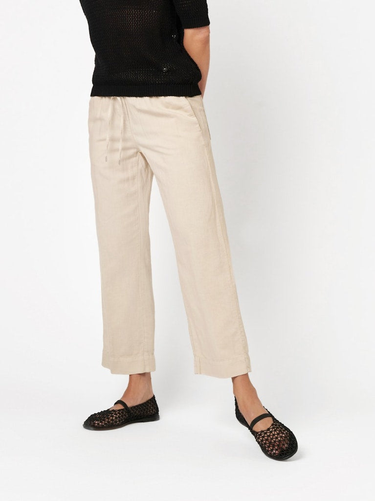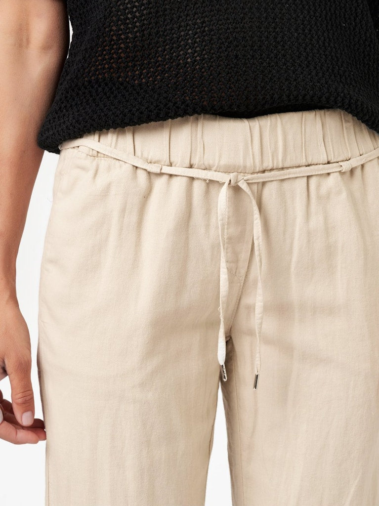 Damenhose Pia Wide 7/8 - Sand - Qualität: - Hose mit entspannter Obeschenkelweite - Hohe Leibhöhe und normale Fußweite - Bequemer Gummibund für ein angenehmes Tragegefühl