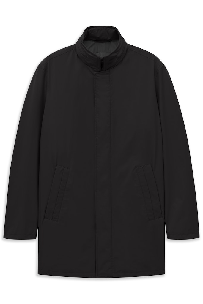 Sportlicher Stehkragen-Mantel mit angeschnittener Blende und schrägen Leistentaschen mit verdeckten Reißverschlüssen. Einrollbarer Oberstoffkapuze und Rückenschlitz. Schlichte Vollfütterung und Innentaschen. Der Artikel mit Stretch-Funktion überzeugt mit seiner wasserfesten Eigenschaft und ist gleichzeitig PFC frei.