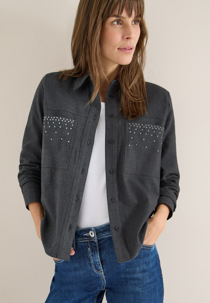 Mit ihrer soften Flanellqualität und den Nieten an den Brusttaschen bringt diese Hemdbluse von CECIL für Damen modischen Western-Charme in deinen Look. Die reine Baumwolle, klassische Knopfleiste und Manschetten mit Knopf runden das Design ab. Ideal für lässige Casual-Styles. Hemdbluse mit Knopfleiste Softe Flanellqualität Brusttaschen mit Nieten Reine Baumwolle Langarm mit Bündchen und Knopf Material: 100% Baumwolle