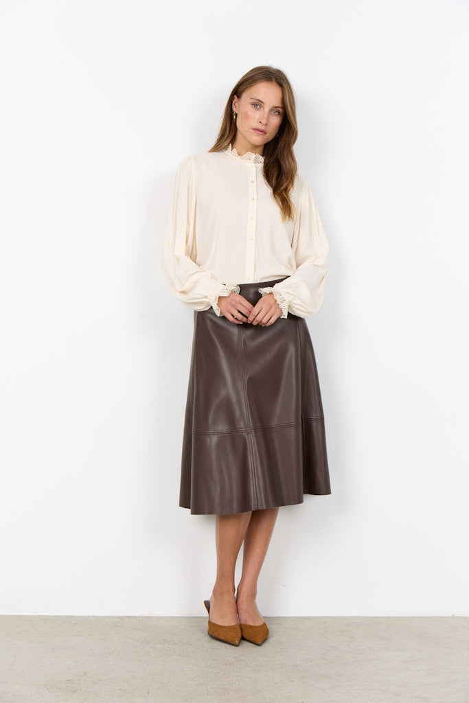 SC-RADIA 224 ist ein Hemd, das aus 100% LENZING™ ECOVERO™ Viskose gefertigt ist. Das Hemd hat elegante Spitzendetails am Kragen und an den Manschetten, eine geknöpfte Vorderseite und ein glattes, langärmeliges Design. Kombiniere es mit einer maßgeschneiderten Hose oder einem Rock für einen raffinierten Look.