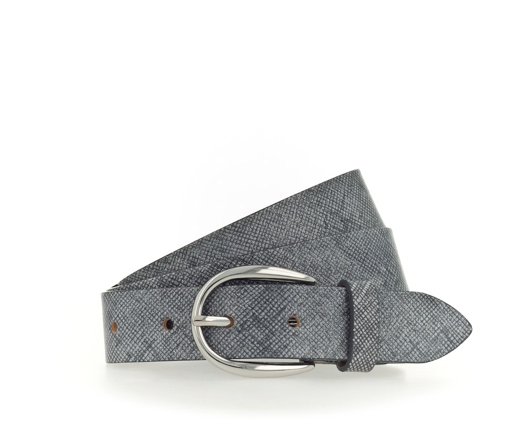 Der Saffianoleder-Gürtel ist 30 mm breit und mit einer klassischen Dornschließe in glänzendem Silber verziert. Das Material ist ein Vollleder mit Saffiano-Prägung und glitzerndem Metallic-Effekt. Dieser Gürtel ist die ideale Ergänzung zu allen Freizeit-Outfits und garantiert einen femininen und verspielten Look. Durch die vollständige Fertigung in der firmeneigenen Produktion in Metzingen, Deutschland, erhalten Sie ein Produkt, das nur wenige Kilometer bis zu Ihnen zurücklegt und jede weitere Frage nach fairem Handel oder korrekten Produktionsbedingungen überflüssig macht.