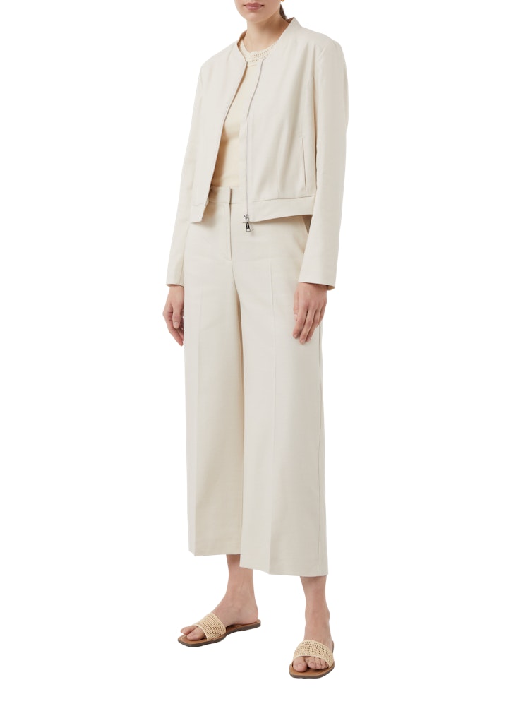 Setzen Sie auf lässige Eleganz mit dieser Wide-Leg-Hose aus hochwertigem Leinenmix. Der Loose Fit und die Ankle-Länge verleihen Ihnen eine modisch-feminine Silhouette. Perfekt für Casual und Business-Looks, überzeugt die Hose mit praktischen Eingriffstaschen und einem komfortablen Formbund in Mid Rise. Der Haken-Ösen-Verschluss und Reißverschluss ermöglichen ein müheloses An- und Ausziehen.