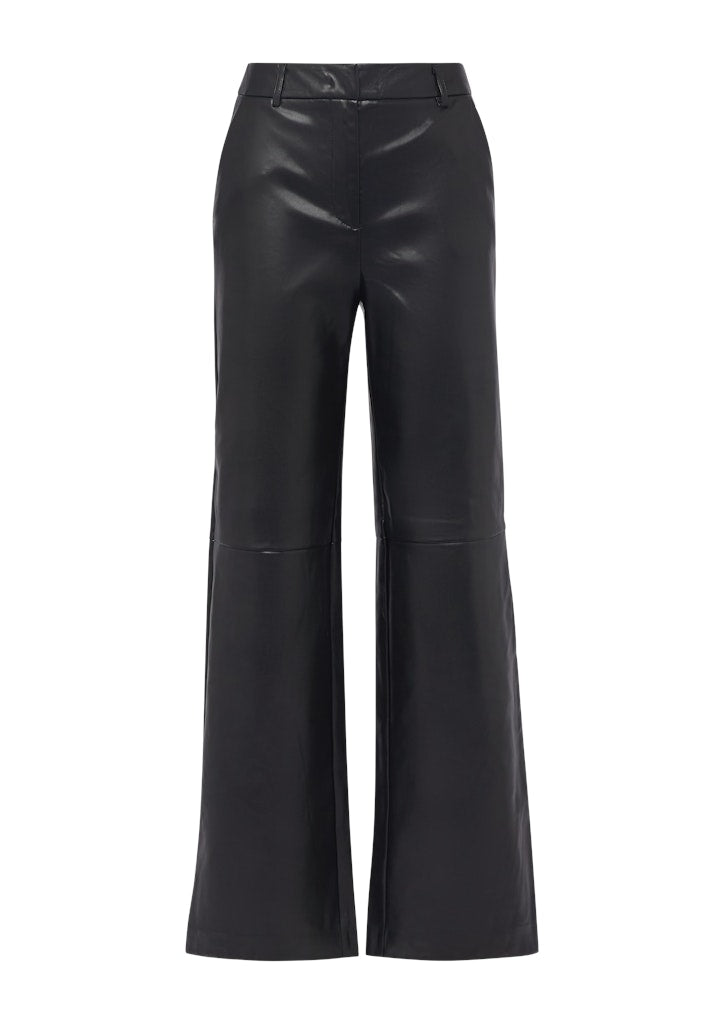 Die Wide-Leg-Hose aus hochwertigem Kunstleder vereint modischen Anspruch mit femininer Eleganz. Der Formbund mit Mid-Rise-Schnitt schmeichelt Ihrer Silhouette, während die fließende Webware für angenehmen Tragekomfort sorgt. Praktische Eingrifftaschen und ein sicherer Verschluss mit Haken, Öse und Reißverschluss runden das Design ab. Diese vielseitige Regular-Fit-Hose lässt sich mühelos von Business-Meetings zu Casual-Anlässen tragen. Kombinieren Sie sie mit Blusen für einen eleganten Look oder stylen Sie sie lässig mit Sneakers – Ihrer Kreativität sind keine Grenzen gesetzt.