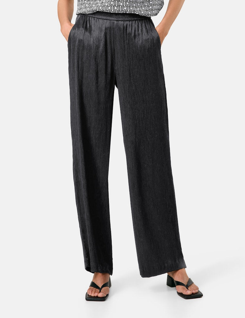Elastischer Dehnbund. Modischer Crinkle-Effekt. Stilvoll und bequem zugleich! Diese elegante Schlupfhose besticht durch ihre fließende Qualität mit modischem Crinkle-Effekt. Der elastische Dehnbund bietet optimalen Tragekomfort, während die praktischen Schubtaschen eine lässige Note verleihen. Ob chic oder entspannt gestylt– diese Hose ist ein echtes Allround-Talent für jeden Anlass!