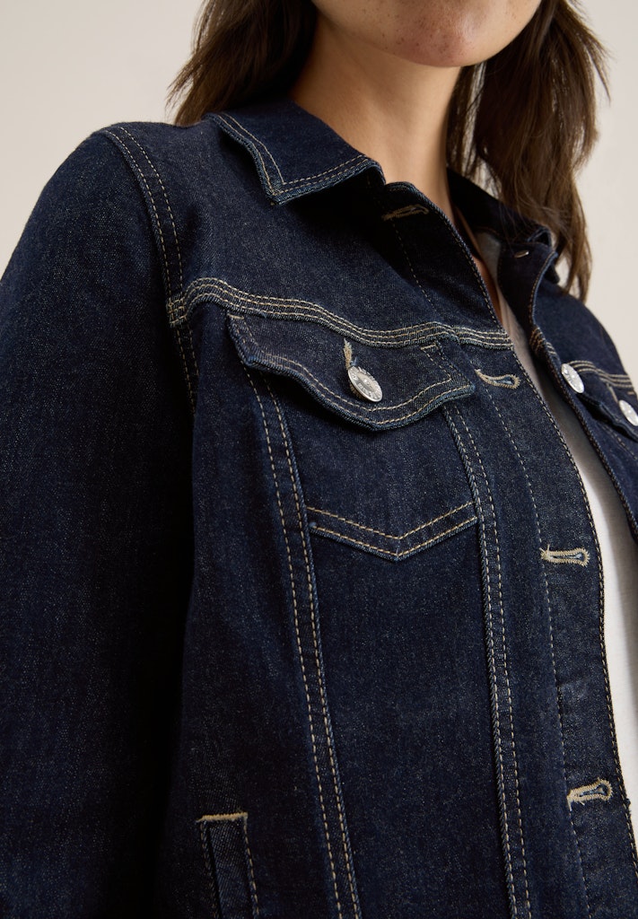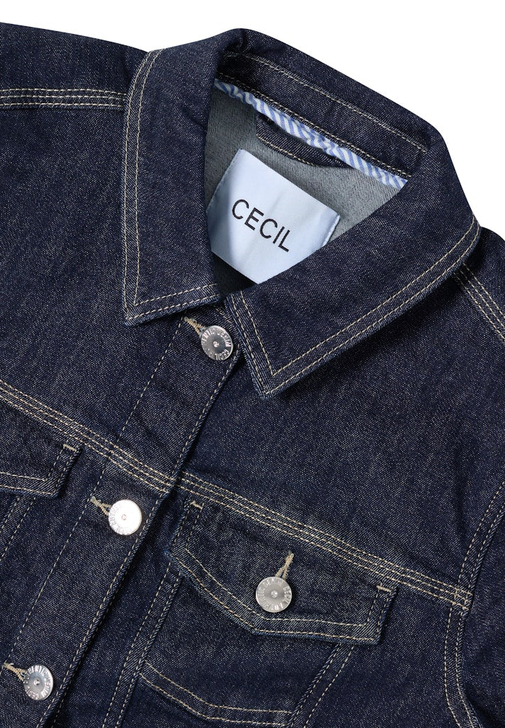 Die Denim Jacke von CECIL für Damen begeistert im klassischen Jeansstil mit Hemdkragen, Brust- und seitlichen Taschen. Eine Knopfleiste und langärmelige Ärmel mit Bündchen und Knopf vervollständigen den authentischen Look. Die rinsed Waschung macht die Jeansjacke vielseitig kombinierbar – ideal für lässige Outfits. Denim Jacke Hemdkragen Brusttaschen und seitliche Taschen Knopleiste Langarm mit Bündchen und Knopf Material: 91% Baumwolle, 7% Polyester, 2% Elasthan