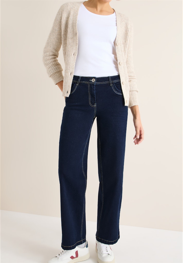 Diese Wide Leg Jeans von CECIL für Damen punktet mit ihrem Loose Fit und dem modischen High Waist Schnitt. Der rinsed Look und der Baumwollmix mit Stretchanteil sorgen für eine gepflegte Optik und hohen Tragekomfort. Ideal für entspannte Styles. Jeanshose im Loose Fit High Waist und Wide Legs 5-Pocket Rinsed Look Baumwollmix mit Stretchanteil Material: 81% Baumwolle, 17% Polyester, 2% Elasthan