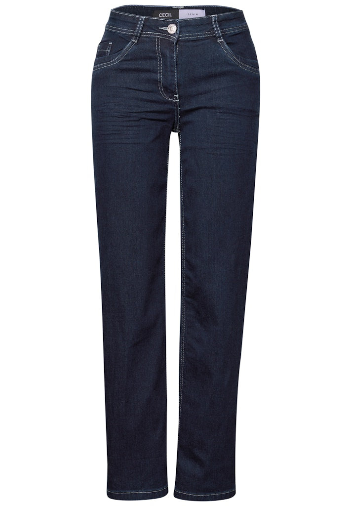 Diese Straight Leg Jeans im Style Neele von CECIL für Damen punktet mit klassischer Rinsed Waschung und einer bequemen Passform. Der Loose Fit mit High Waist sorgt für Komfort, während der gerade Schnitt vielseitige Kombinationsmöglichkeiten bietet. Der elastische Baumwollmix trägt sich angenehm im Alltag. Jeanshose im Loose Fit High Waist und Straight Legs Rinsed 5-Pocket-Style Baumwollmix mit Stretchanteil Material: 69% Baumwolle, 29% Polyester, 2% Elasthan