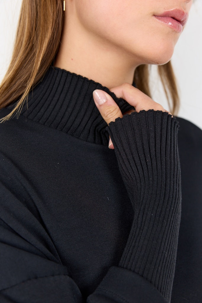 Das SC-BANU 273 Kleid ist aus 48% Modal, 48% Polyester und 4% Elastan gefertigt. Das elegante Kleid hat einen gerippten Rollkragen, lange Ärmel mit Lagenoptik und eine lockere Passform. Kombiniere es mit Ankle Boots oder Leggings für einen stilvollen Look.