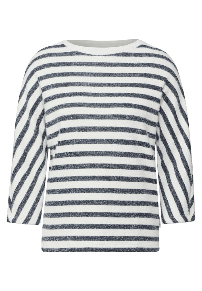Das gestreifte Federgarn Shirt von CECIL für Damen ist ein kuscheliger Blickfang für gemütliche Looks. Es hat einen elastischen Saum, der für eine optimale Passform sorgt sowie einen U-Boot-Ausschnitt und 3/4-Ärmel. Der Materialmix mit Stretchanteil sorgt für hohen Tragekomfort. Damenshirt U-Boot-Ausschnitt 3/4-Arm Elastischer Saum Materialmix mit Stretchanteil Material: 55% Polyamid, 27% Polyester, 16% Viskose, 2% Elasthan