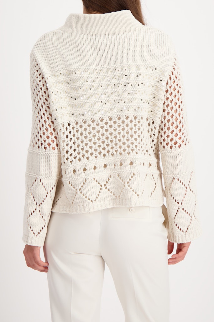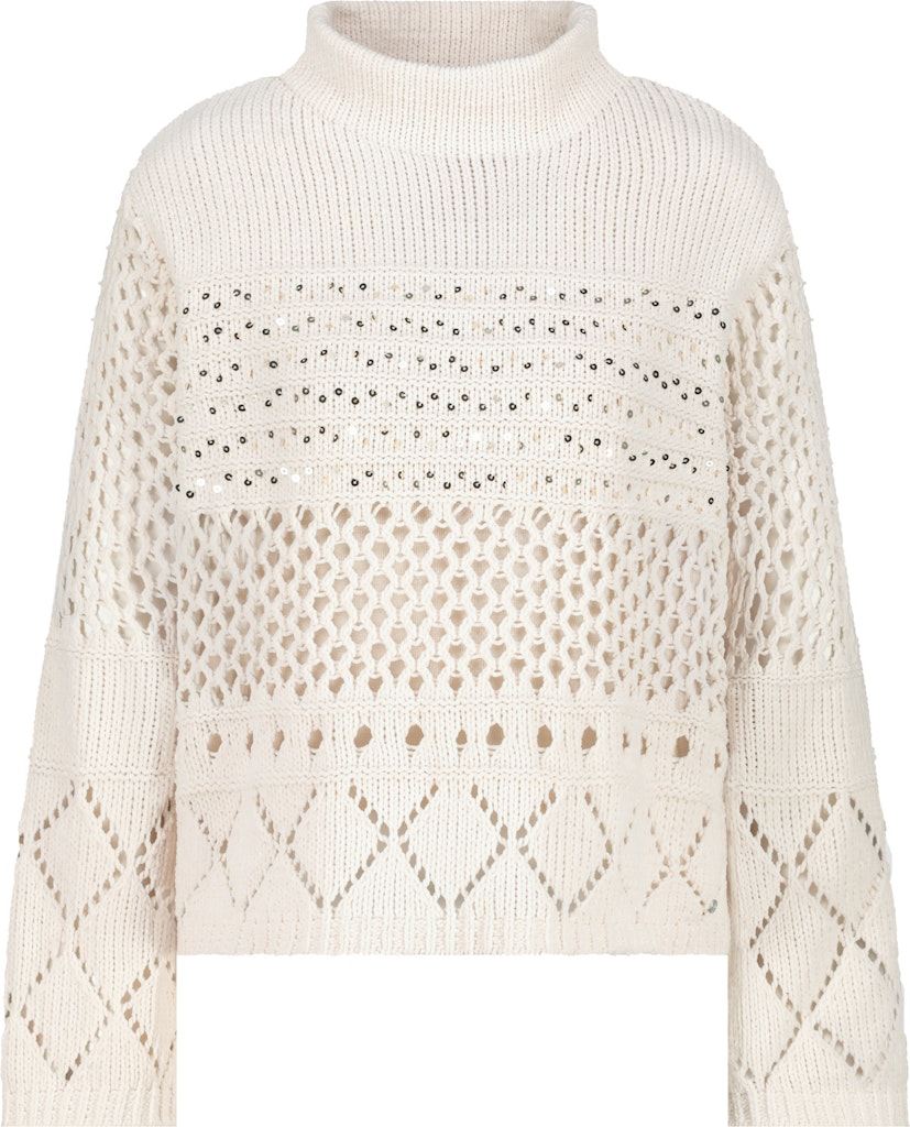 Moderner Strickpullover aus Chenille Garn mit einer weichen Haptik, einem Ajourmuster und Pailletten. Perfekt für stilbewusste Looks.