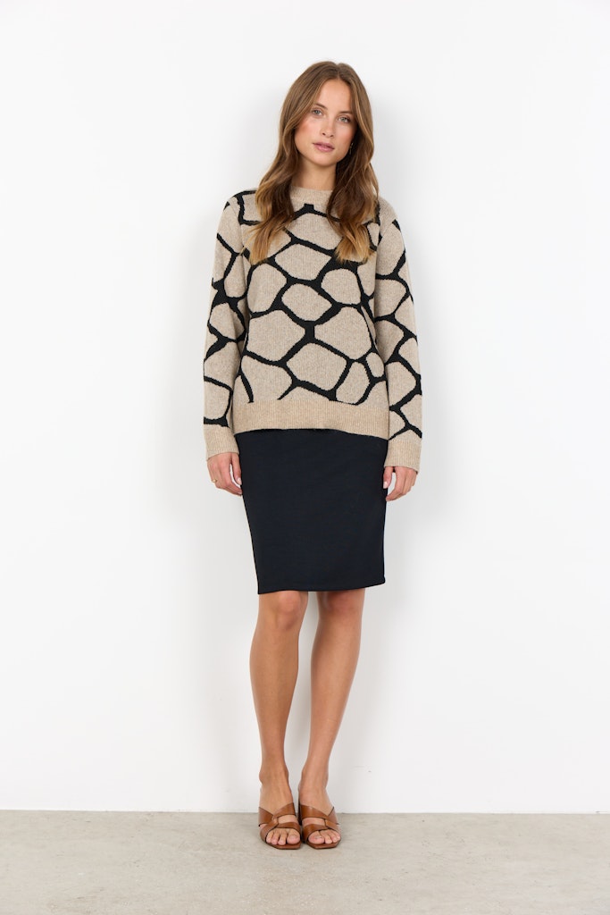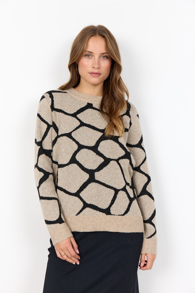 SC-ANCONA 1 ist ein Pullover aus 63% recyceltem Polyester, 28% Acryl, 6% Wolle und 3% Elastan. Er hat einen gemütlichen Rundhalsausschnitt und ein auffälliges abstraktes Muster. Kombiniere ihn mit Jeans für einen entspannten Look oder trage ihn über ein knackiges Hemd für einen raffinierten Touch.