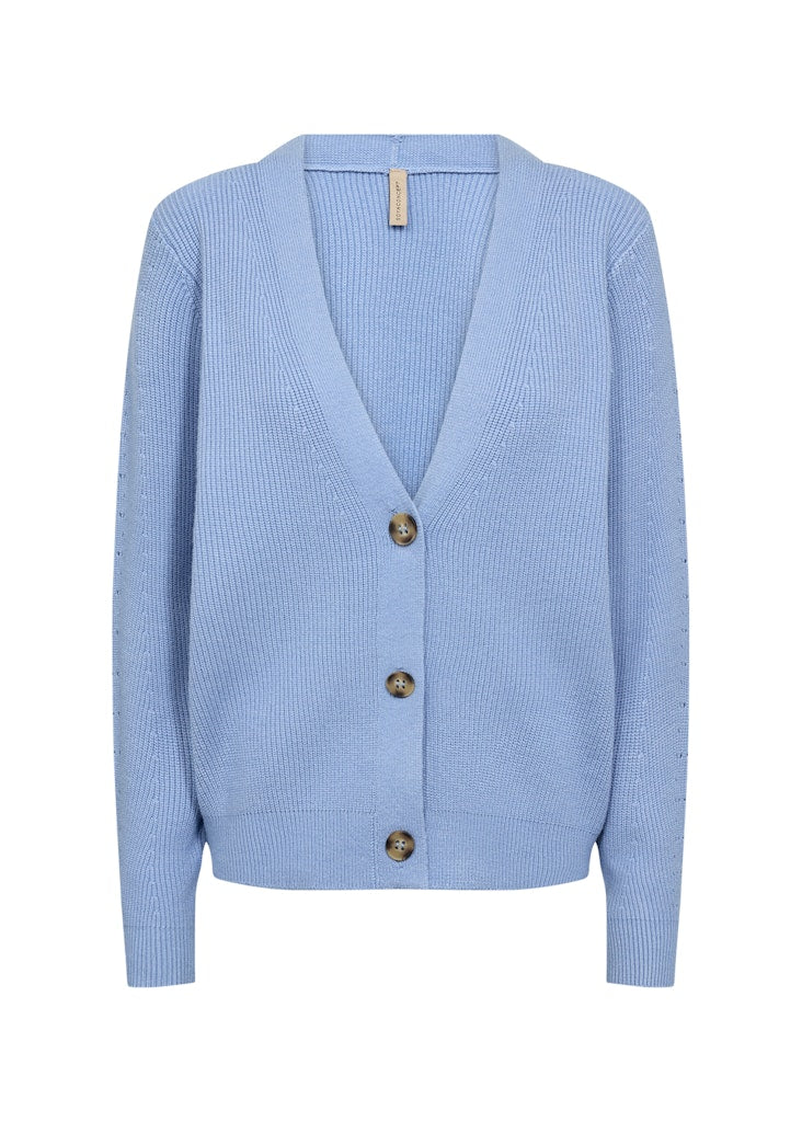 SC-Kanita 12 ist eine feminine Strickjacke aus einer weichen Mischung aus Viskose, Polyester und Nylon. Die Strickjacke hat einen V-Ausschnitt, lange Ärmel, einen Knopfverschluss und eine bequeme Passform. Trage diese schöne Strickjacke über einem bedruckten T-Shirt und einem Rock für einen süßen Look.