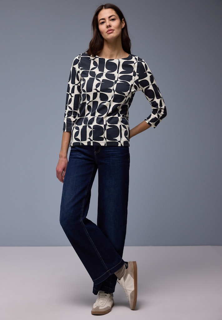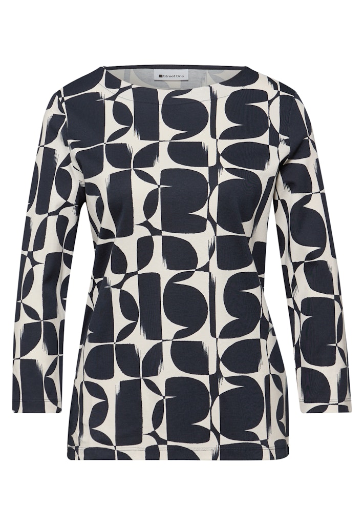 Das gemusterte Baumwollshirt von Street One für Damen mit U‑Boot‑Ausschnitt und 3/4‑Arm überzeugt mit grafischem Muster und hohem Tragekomfort. Die reine Baumwolle liegt angenehm auf der Haut und lässt sich einfach stylen. Ein lässiger Look für vielseitige Casual‑Outfits. Baumwollshirt Casual U-Boot-Ausschnitt 3/4-Arm Bequem Material: 100% Baumwolle