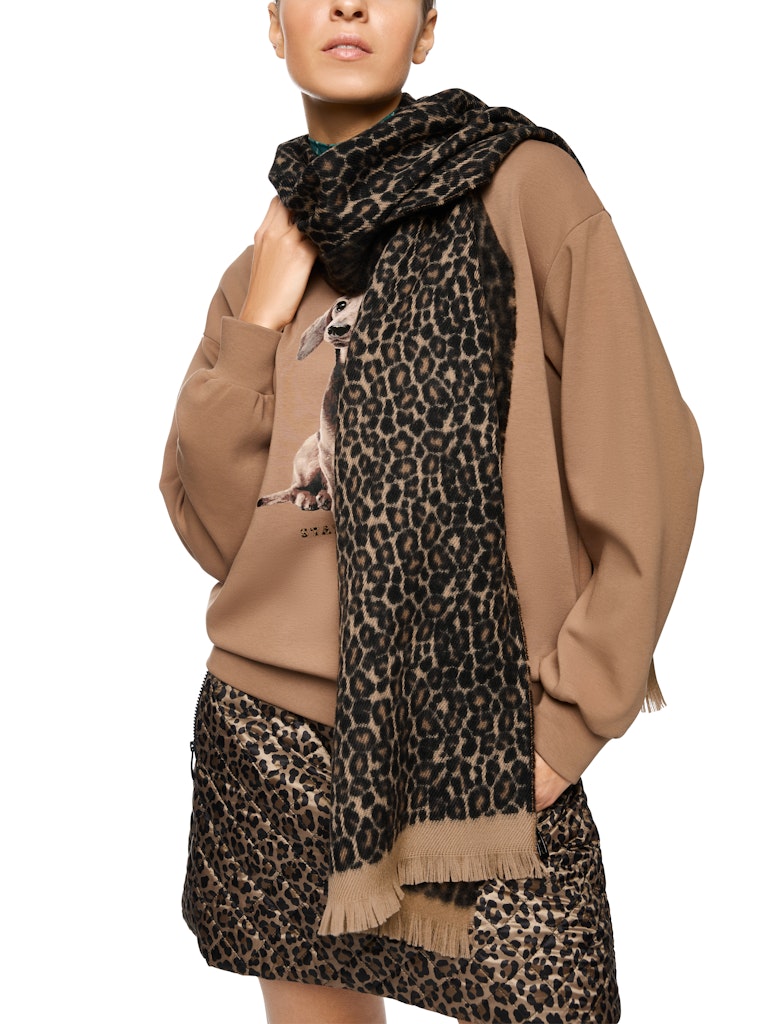 Hochwertiger Schal aus 100 % reiner Schurwolle. Das markante Allover-Leo-Design verleiht dem klassischen Accessoire eine moderne Note. Angenehm wärmend, weich im Griff – perfekt für stilvolle Winter-Looks.