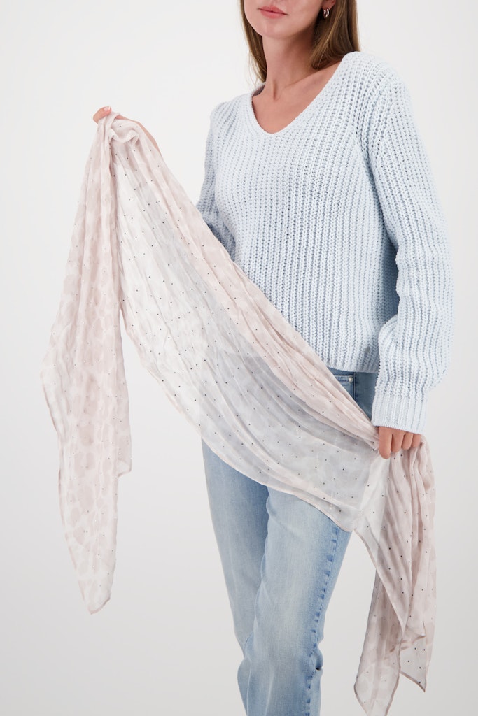 Dieses modische Tuch aus fließender Viskose überzeugt mit einem ausdrucksstarken Allover-Leomuster mit Strasssteinen. Die rechteckige Form ermöglicht vielseitige Styling-Varianten – ob lässig um den Hals, als Haarband oder dekoratives Accessoire. Der weiche Stoff trägt sich angenehm leicht und verleiht jedem Outfit das gewisse Etwas.