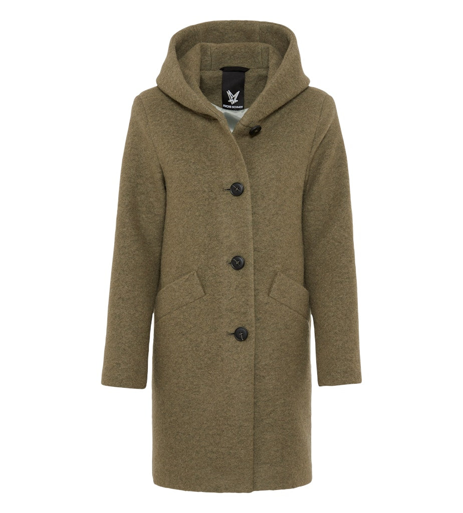 Strickkurzmantel, angeschnittene Kapuze, Pattentaschen, Made in Europe