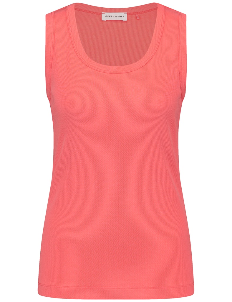 Ausschnittblende und Saumkante in Rippstrick. Body fein gerippt. Schlicht, bequem, vielseitig! Dieses körpernahe Top aus soft-elastischem Jersey begeistert mit perfekter Passform und einer stilvollen gerippten Ausschnittblende. Ob solo oder als Layering-Piece – ein Must-have für jede Gelegenheit.