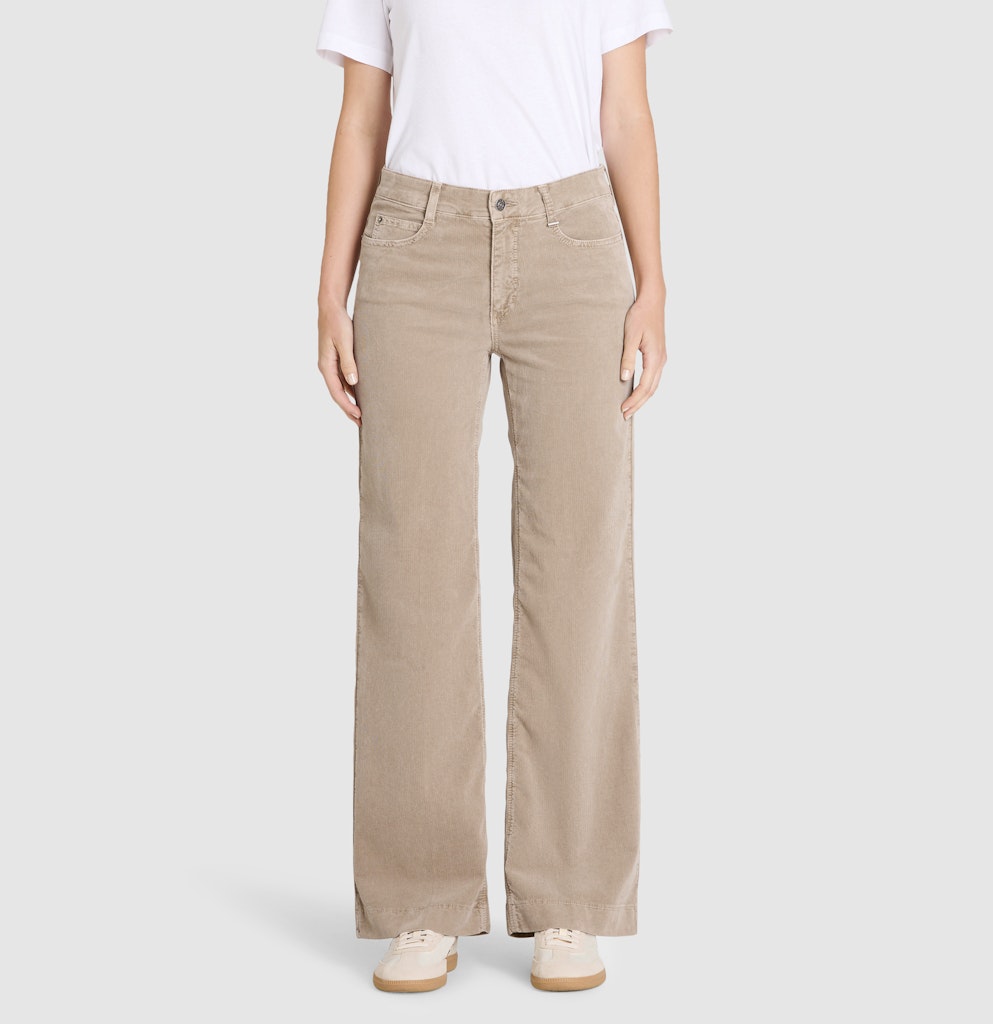 Wide Fit, Wide Leg, gerades, weites Bein, mittlere Leibhöhe, bequeme Taille, Five Pocket, Baby Soft Corduroy, hochwertige, elastische Babycord-Qualität im Baumwoll-Mix, sehr weicher Griff, authentische, sportive Optik, ausgezeichnete Farbbrillanz, hervorragende Passform, hoher Tragekomfort, über Better Cotton gesourcte Baumwolle, Das Model ist 1,75m groß und trägt die MAC Hosengröße 36, Fußweite bei Größe 36: 52cm