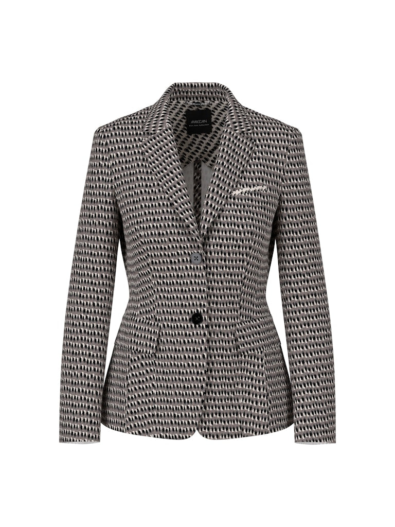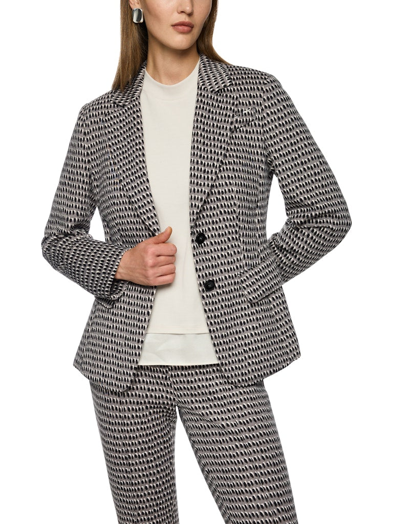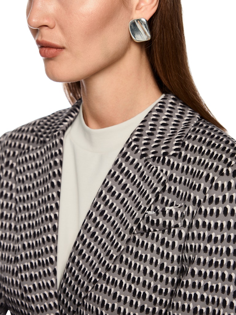Moderner Blazer aus bequemem Scubajersey mit trendigem Sprinkles-Print. Die taillierte Form, zwei Knöpfe, Klappen und der gerundete Saum sorgen für einen stylischen Look und optimalen Tragekomfort. Ideal für Büro und Freizeit!