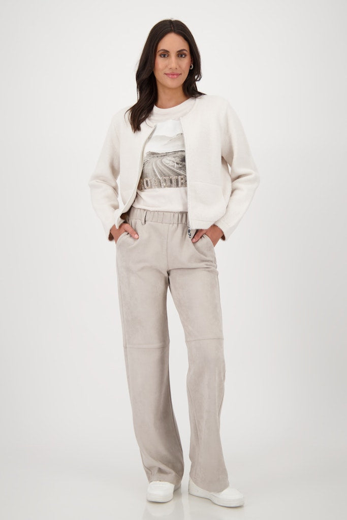 Flauschige Strickjacke aus hochwertiger Baumwollmischung mit elastischem Material für angenehmen Tragekomfort. Weiche Haptik und klassischer Rundhalsausschnitt machen sie zum perfekten Begleiter für gemütliche Looks.