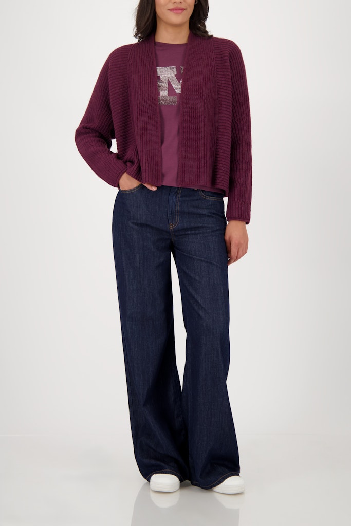 Eleganter Stricküberwurf aus fließender Viskose und hochwertiger Wolle, mit leicht überschnittenen Schultern und schickem Schalkragen.