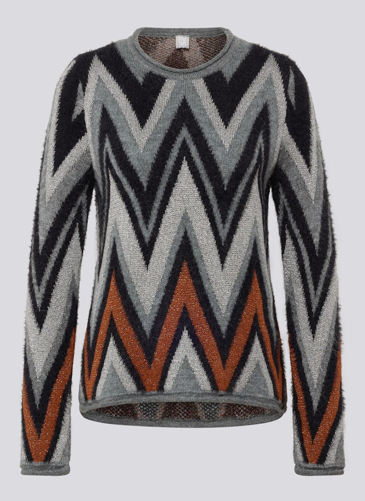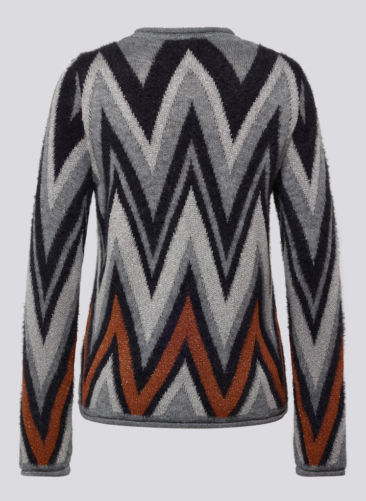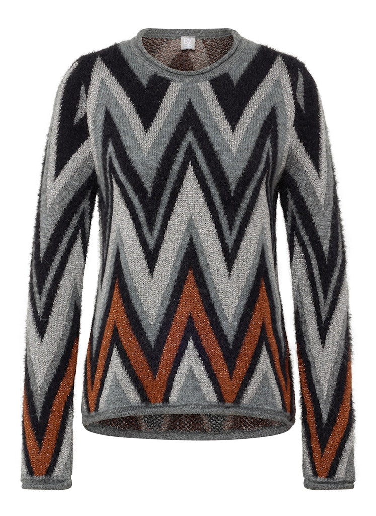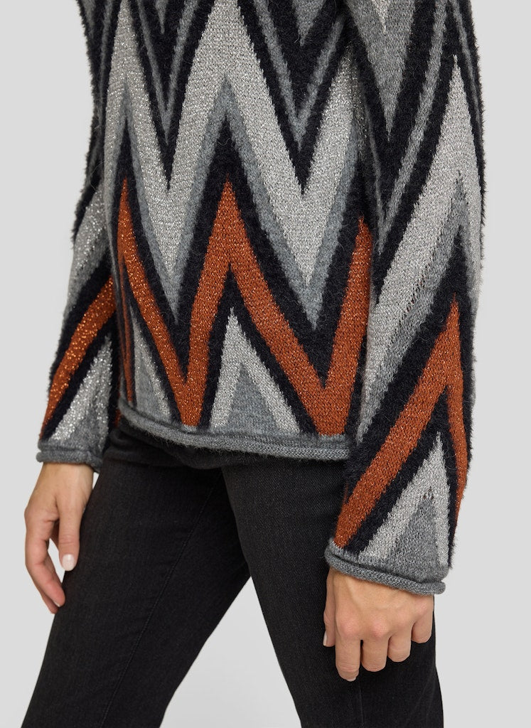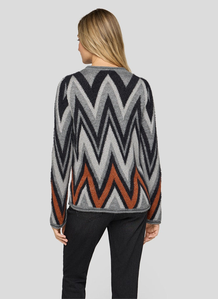 Ein Eyecatcher mit besonderen Materialien: Dieser Pullover überzeugt mit einem dynamischen Zickzack-Design in harmonischer Farbgebung. Der weiche Feinstrick enthält neben pflegeleichten Fasern auch feine Naturmaterialien wie Maguey und Alpaka. Maguey sorgt für eine dezente Struktur und Strapazierfähigkeit, während der geringe Alpakaanteil für einen angenehm wärmenden Griff steht. Der klassische Rundhalsausschnitt und die leicht taillierte Form machen das Modell vielseitig kombinierbar _ ob casual oder schick. Weicher Feinstrick mit Naturfasern. Mit Maguey für dezente Struktur. Alpaka-Anteil für ein warmes Tragegefühl. Farblich abgestimmtes Zickzackmuster. Rundhalsausschnitt mit Rippenstrickabschluss.