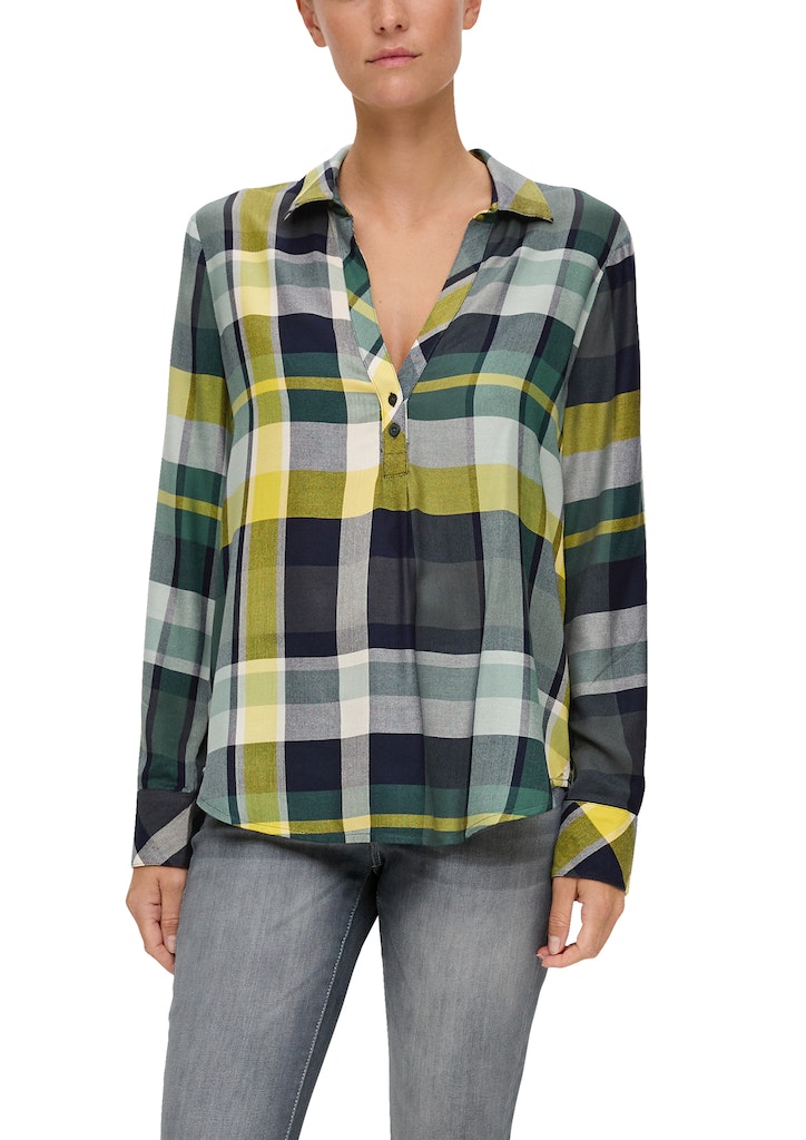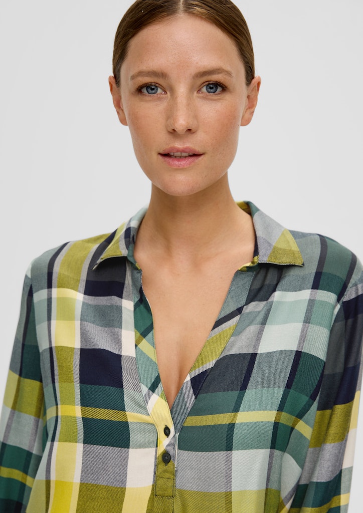 Diese zauberhafte Bluse aus einem luxuriösen Modal-Viskose-Mix ist das Must-Have für jede modebewusste Frau. Der Hemdkragen und die langen Ärmel verleihen einen eleganten Touch, während der V-Ausschnitt die Weiblichkeit unterstreicht. Mit einem Regular Fit und einem abgerundeten Saum ist diese Bluse der Inbegriff von Komfort und Stil. Die halblange Länge macht sie perfekt für jeden Anlass, sowohl im Büro als auch in der Freizeit. Die sanfte, glatte Qualität sorgt für ein angenehmes Tragegefühl den ganzen Tag über. Kombiniere sie mit einer Skinny Jeans und Absatzschuhen für einen mühelos schicken Look! Gönn dir jetzt dieses zeitlose Stück für deinen Kleiderschrank.