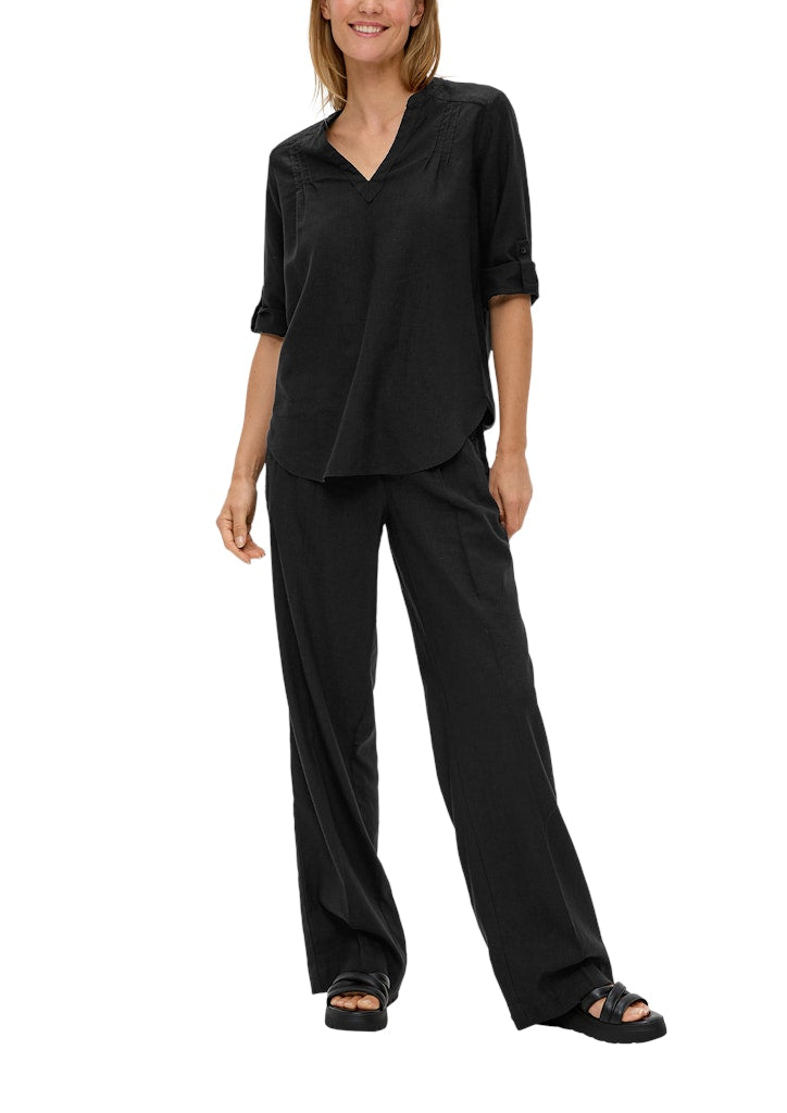 Entdecke die vielseitige Leinenbluse mit 3/4-Ärmeln - der perfekte Begleiter für den Frühling und Sommer. Das hochwertige Material aus 55% Leinen und 45% Viskose sorgt für einen angenehmen Tragekomfort. Der V-Ausschnitt und der abgerundete Saum verleihen einen femininen Touch. Style sie lässig mit Jeans oder aufregend mit einem Rock. Greif jetzt zu und lass dich von dieser luftigen Bluse verzaubern!