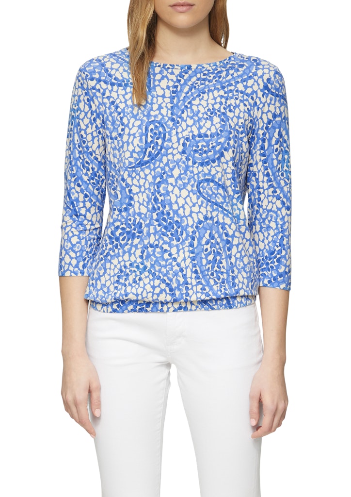 Rundum wohlfühlen in diesem vielseitigen 3/4-Arm-Shirt! Der weiche Viskosestretch-Jersey schmiegt sich angenehm an und begleitet dich flexibel durch den Tag. Ob beim Kaffee mit Freunden oder beim spontanen Ausflug – das allover gemusterte Shirt im Relaxed Fit passt immer. Tipp: Kombiniere es lässig zur Jeans oder elegant zum Rock.