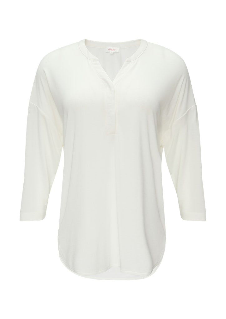 Fließende Eleganz trifft auf Komfort! Dieses Blusenshirt aus Modalmix mit 3/4-Ärmeln schmeichelt deiner Silhouette. Der abgerundete Saum verleiht dem Oberteil eine feminine Note. Perfekt für den Büroalltag oder einen entspannten Abend mit Freunden. Kombiniere es mit einer Skinny Jeans für einen stylischen Look oder einer weiten Palazzo-Hose für mehr Raffinesse. Ein vielseitiges Must-have für jede Garderobe!
