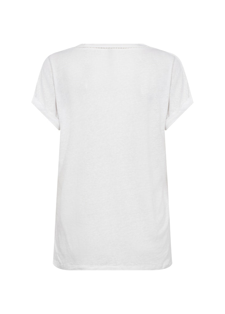 SC-EMEL 4 ist ein T-Shirt aus einer atmungsaktiven Mischung aus 55% Leinen und 45% Viskose. Das Oberteil hat einen V-Ausschnitt mit Ösenverzierung und kurze Ärmel. Es kann mit verschiedenen Unterteilen kombiniert werden, um einen entspannten und modernen Look zu erzielen.