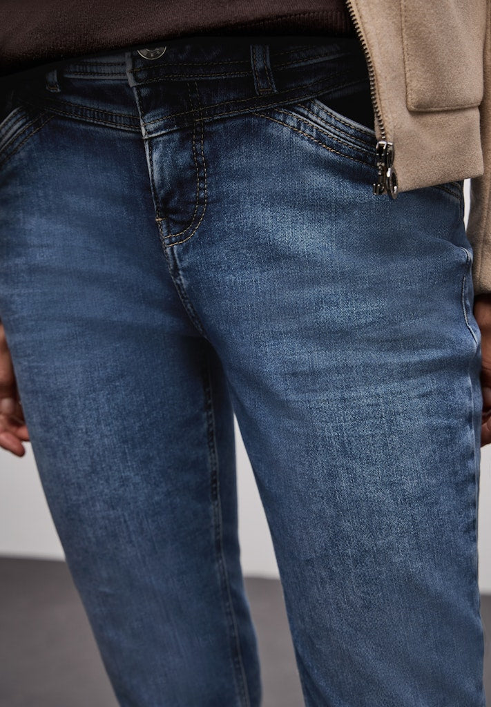 Diese Jeans von Street One für Damen ist im Loose Fit geschnitten und kombiniert Mid Waist mit Tapered Legs. Die hellblaue Waschung bringt Leichtigkeit in deinen Look, während der 5-Pocket-Style klassisch bleibt. Der Baumwollmix mit Stretchanteil bietet angenehmen Komfort. Jeanshose Mid Waist und Tapered Legs Hellblaue Waschung 5-Pocket-Style Baumwollmix mit Stretchanteil Material: 76% Baumwolle, 18% Lyocell, 4% Elastomultiester, 2% Elasthan