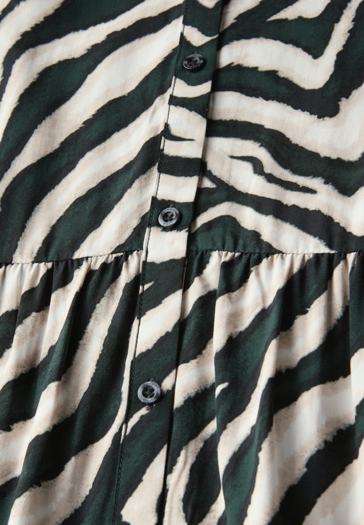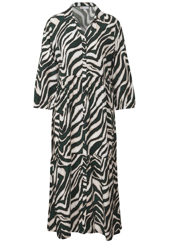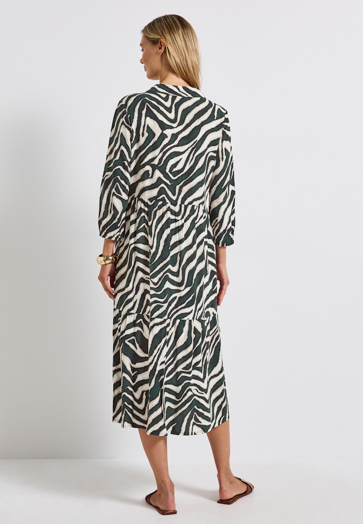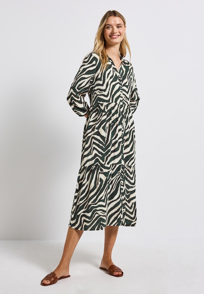 Dieses Volant-Kleid von Street One für Damen vereint angesagten Animal Print mit fließender Viskose für maximalen Komfort. Der Hemdkragen, die Knopfleiste und die elastischen Ärmelbündchen setzen stilvolle Akzente. Feminine Volants runden den Look modisch ab. Midi-Kleid mit Animal Print Hemdkragen und durchgehende Knopfleiste 3/4-Arm mit elastischen Bündchen Volants Weiche Viskose Material: 100% Viskose